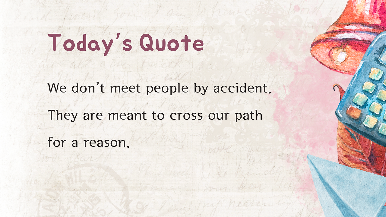의역하면 "우리는 그저 우연히 만난게 아니다. 어떤 이유가 있기 때문에 그들(우리가 우연히 만난 듯한 그 사람들)은 우리와 마주치도록 이미 계획되어져 있었던 것입니다."