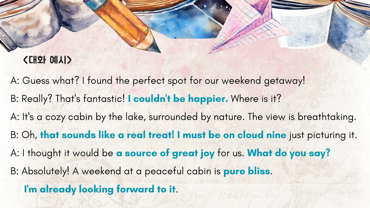 위의 표현들이 들어간 짧은 대화를 소개했습니다.