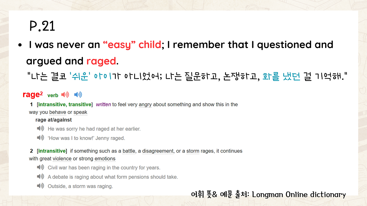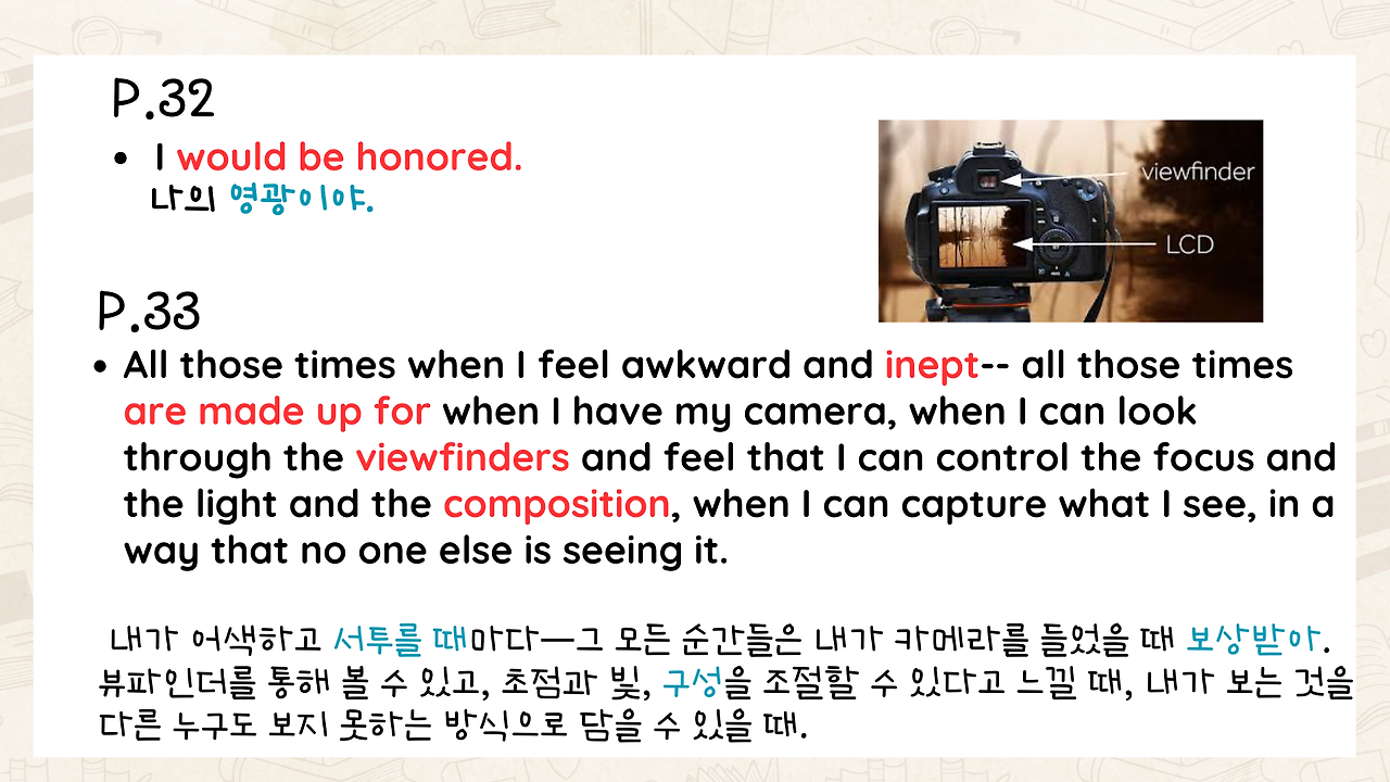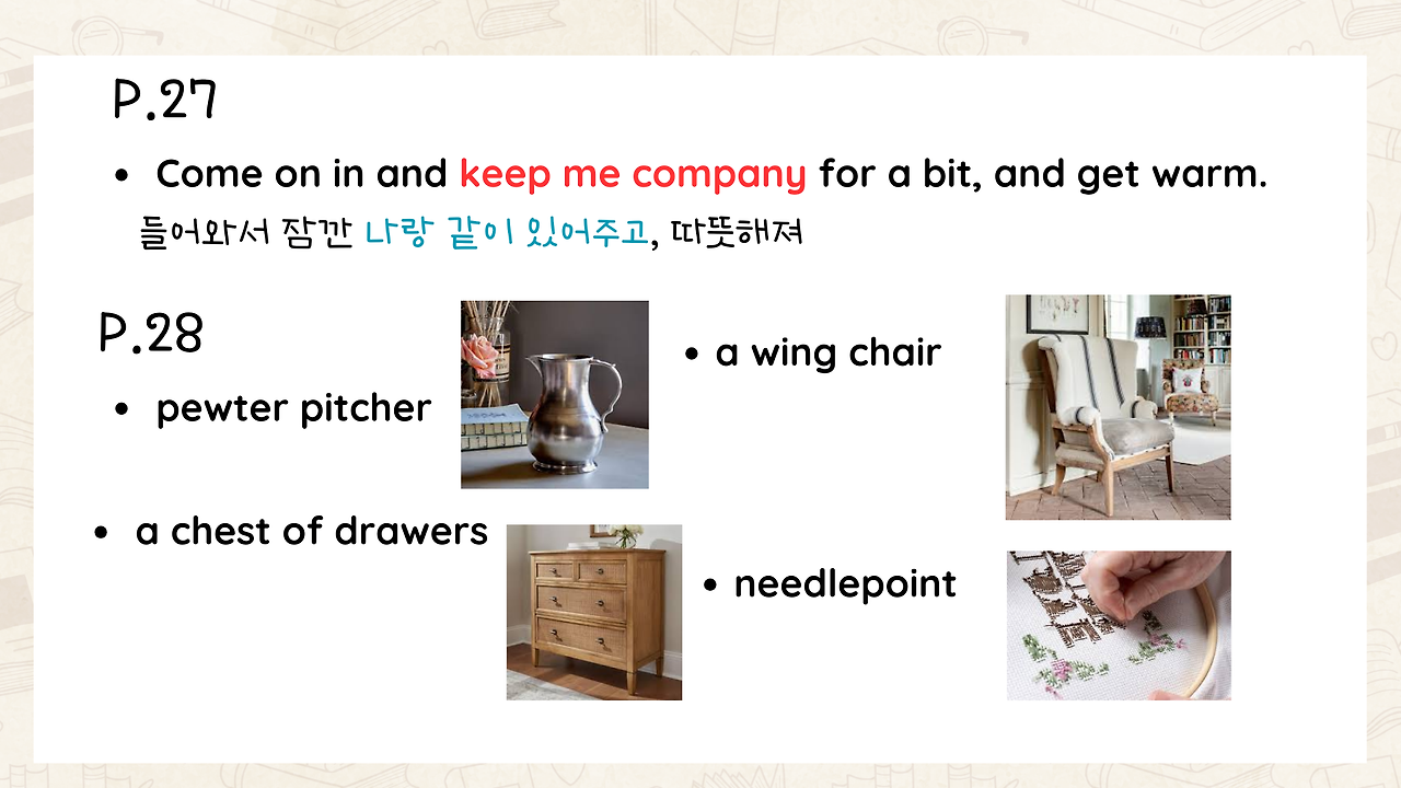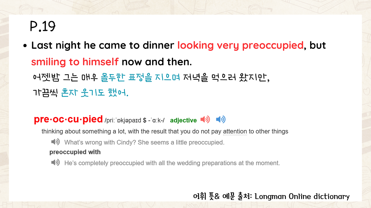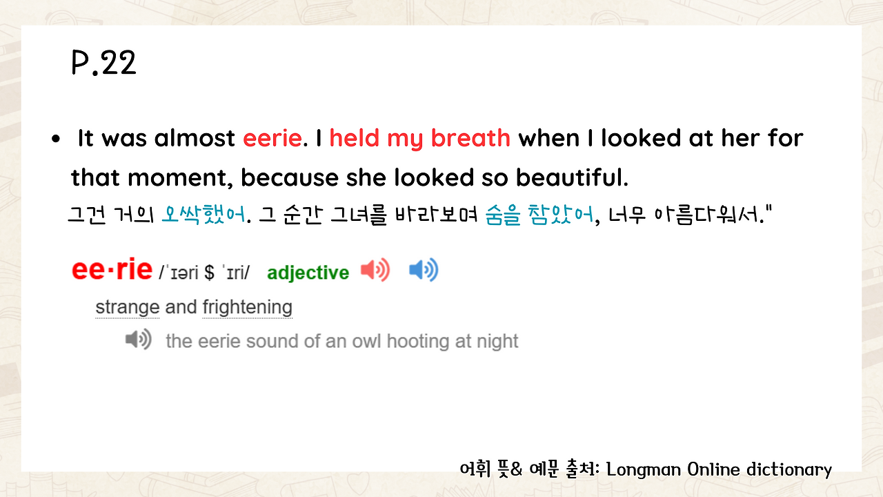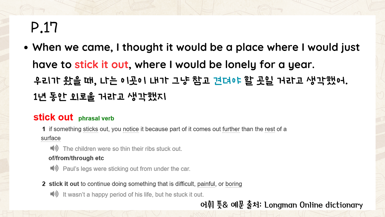오늘 읽은 부분에서 유용한 표현이나 단어 정리는 이렇게 했습니다.