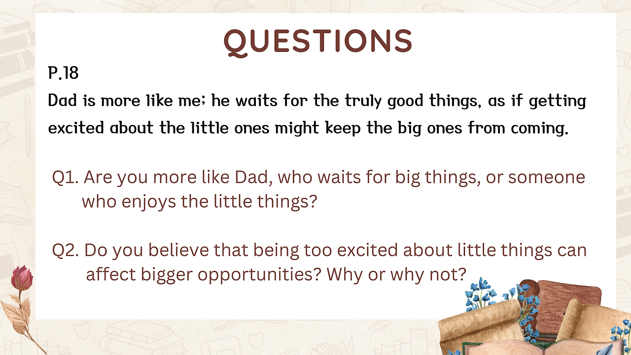 2) 사소한 일에 즐거워하다가 정작 중요한 좋은 일에 부정이 탈까봐 조심하는 사람. (아빠와 동생 Meg)
