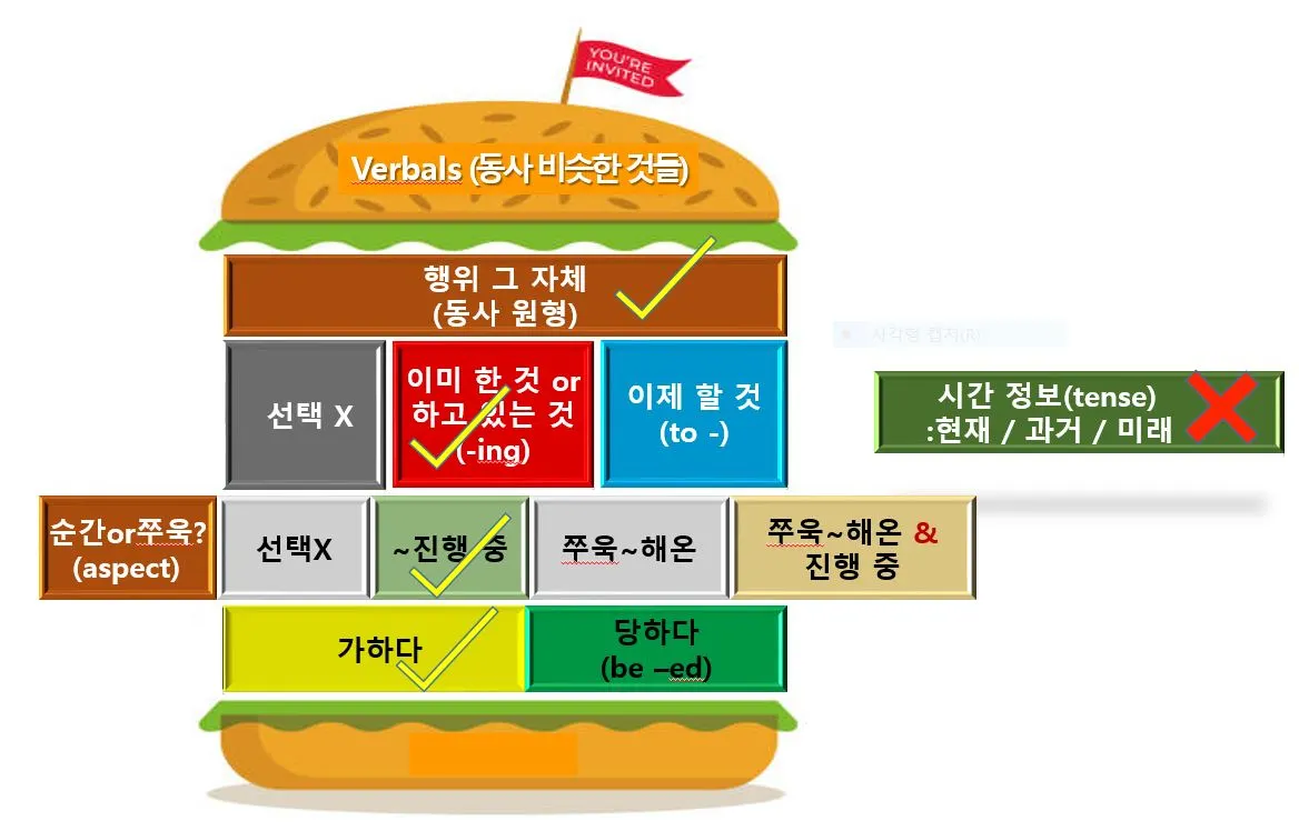 2. 준동사(동사 비슷한 것 Verbals): 시간(tense) 정보 뺀 큰 햄버거