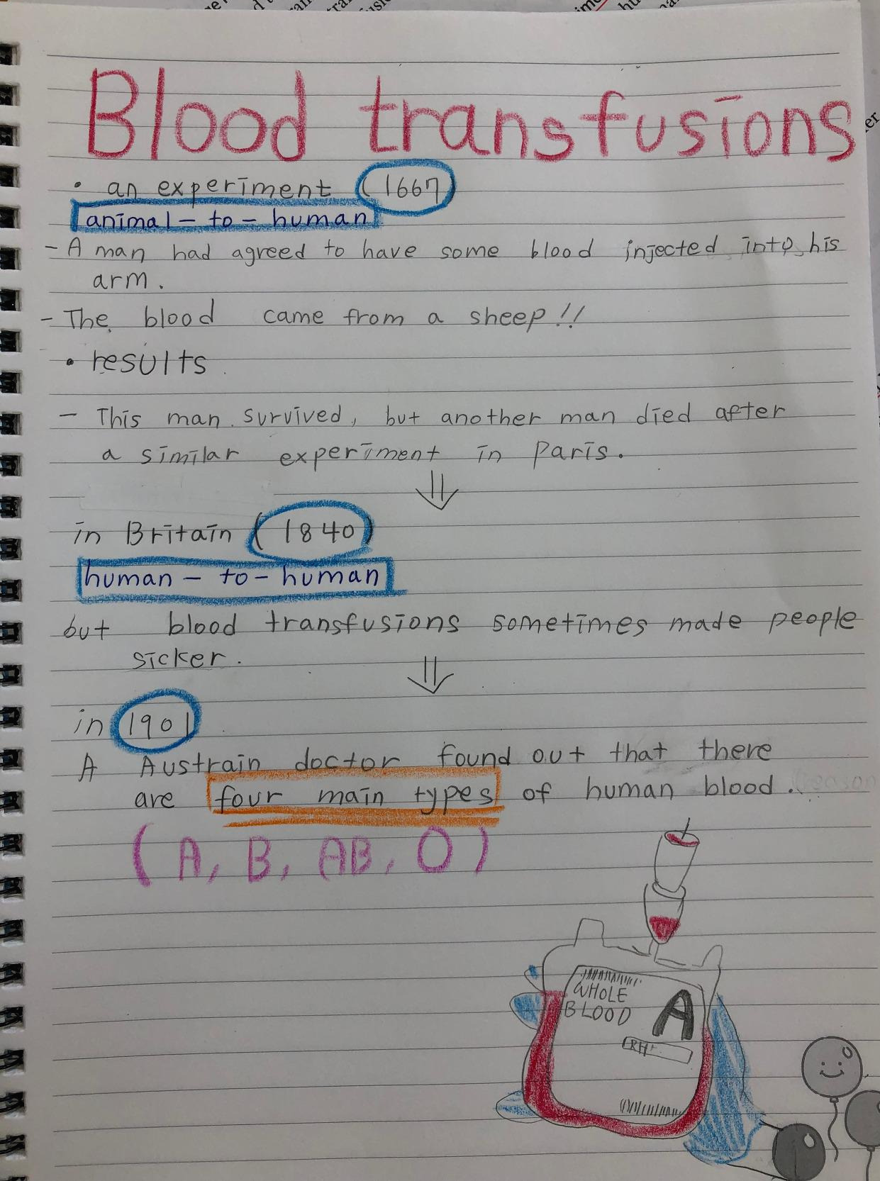 Step 4. 글의 내용을 스프링 줄 노트에 도식화하여 영어로 간략 메모로 요약한다.