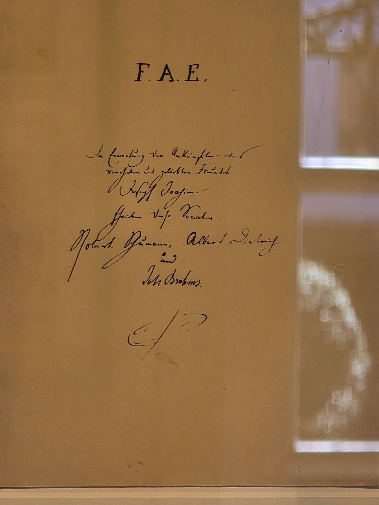 요아힘은 그곳에서 만난 리스트를 비롯한 급진적인 성향의'신독일학파'들이 자신이 존경하는 슈만과 멘델스존을 폄하하는 발언에 깊은 상처를 입고 있었다. 지친 제자를 위로하고 싶었던 슈만은 브람스와 제자 디트리히에게 특별한 제안을 했다. 요아힘의 모토인 'F-A-E(Frei aber Einsam, 자유롭지만 고독하게)'의 앞 글자를 따서 바이올린 소나타를 합작해 선물하자는 것이었다.