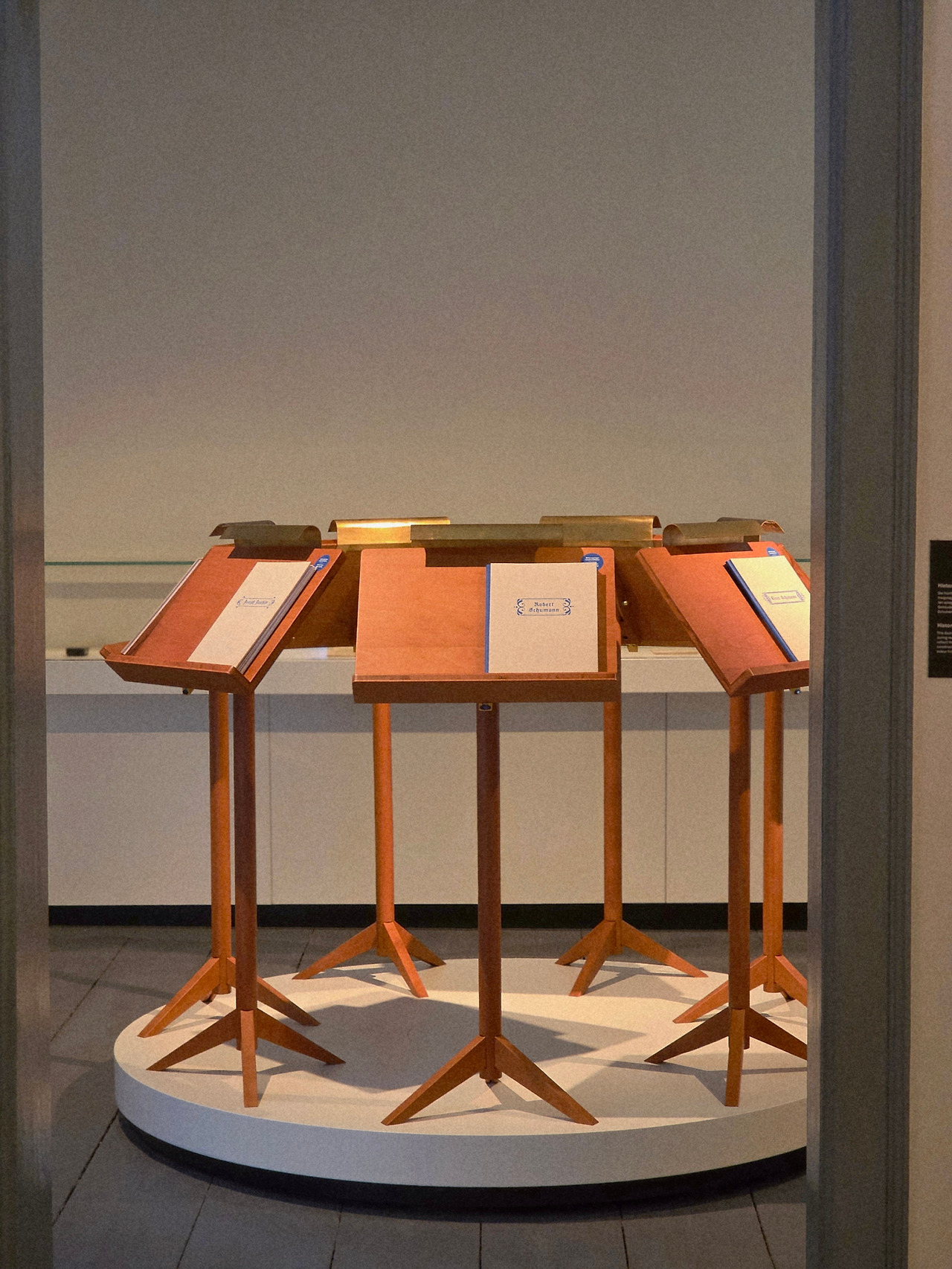 바로 이 장면을 생생하게 느낄 수 있는 공간이 뒤셀도르프 슈만 하우스에 있다. '클라라의 방'을 지나면 '사교의 방(Gesellschaftszimmer)'이 나온다. 사진 속 전시실은 당시 슈만 부부가 아끼는 손님들을 맞이하던 응접실을 보여준다. 보면대 위에는 이곳을 찾았던 손님들의 이름이 적힌 책자들이 놓여 있다.