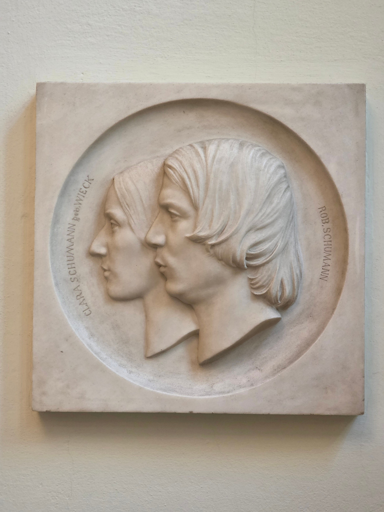 첫발을 내딛자마자 벽면을 장식한 한 점의 부조가 시선을 사로잡았다. 로베르트와 클라라, 두 사람의 옆모습이다. 수많은 밤, 내 마음을 흔들고 또 위로했던 이 부부를 드디어 마주한다. 슈만과 친분이 깊었던 조각가 에른스트 리첼이 만든 이 부조에는 재미있는 사연이 숨어 있다. 원래 리첼은 당시 남편보다 유명했던 피아니스트 클라라를 앞쪽에 배치하려 했다. 하지만 로베르트는 "창조하는 예술가가 재창조하는 예술가(연주자)보다 앞에 나와야 한다"며 본인을 앞에 세울 것을 고집했다고 한다. 아내를 깊이 사랑하면서도, 한편으론 천재적인 아내의 재능을 질투했던 로베르트의 인간적인 면모가 엿보여 슬며시 웃음이 났다.