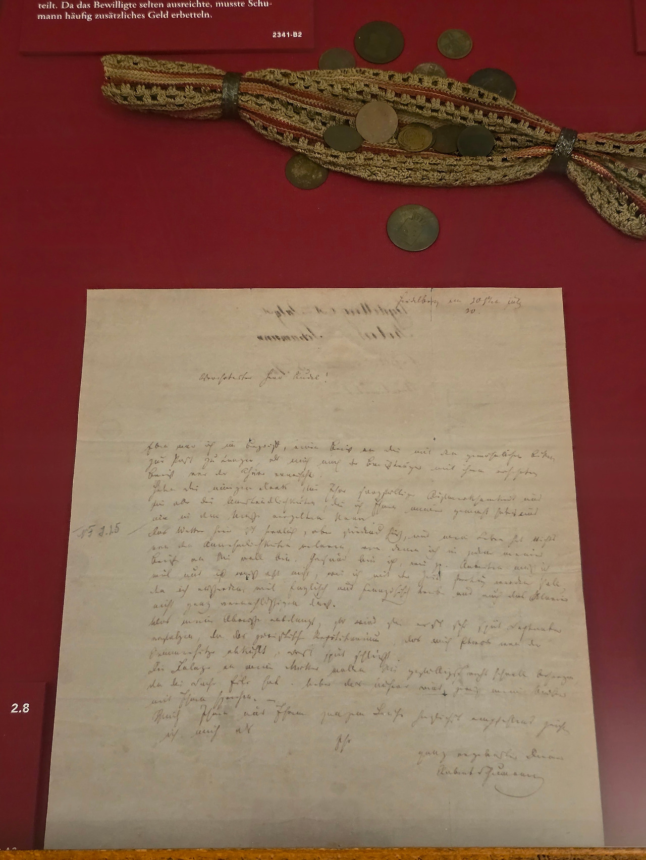 전시실에 들어서고 본격적인 여정이 시작되었다. 1810년 6월 8일, 바로 이곳에서 아우구스트 슈만과 크리스티아네 슈만의 사랑스러운 막내아들, 로베르트가 태어났다.