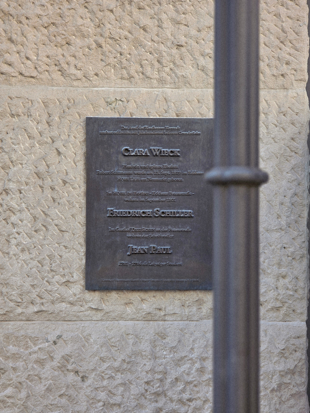 번화가인 그리마이셰 슈트라세를 걷다 보면 어느 한 상가건물의 벽면에 붙어있는 동판을 볼 수 있다. "클라라 비크, 프리드리히 실러, 장 파울이 이곳에 살았다." 독일의 유명한 음악가와 극작가, 소설가가 이 한 곳에 살았다니 정말 놀랍다. 그중 내가 주목한 것은 바로 클라라 비크다.