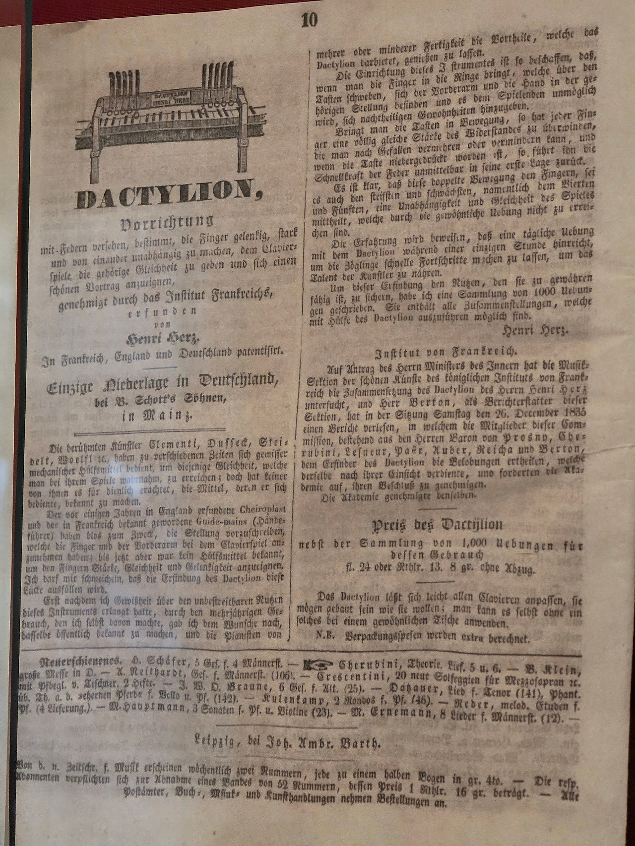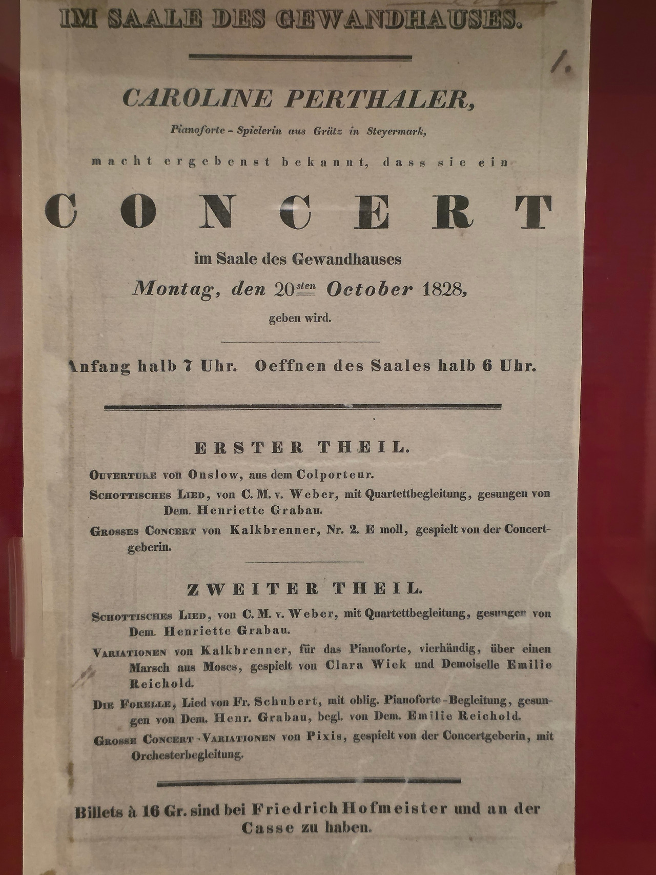 9살의 클라라 비크 초상화, 1828년 아홉 살의 나이로 게반트하우스에 데뷔한 클라라 비크의 프로그램북