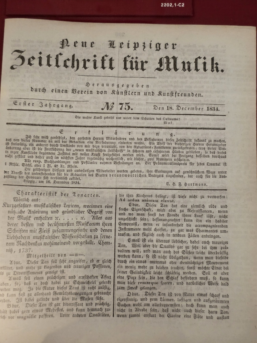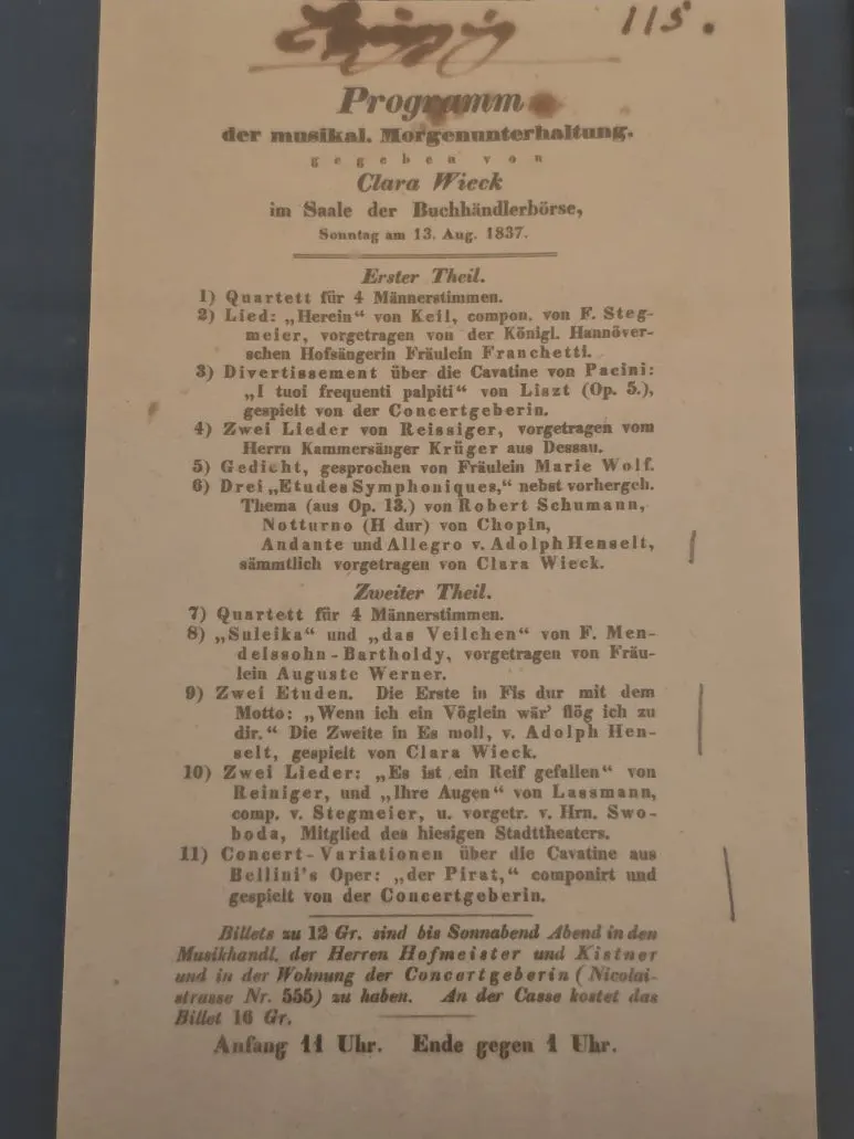 1837년 슈만의 '교향적 연습곡'이 포함된 라이프치히 클라라 프로그램, 츠비카우 슈만하우스