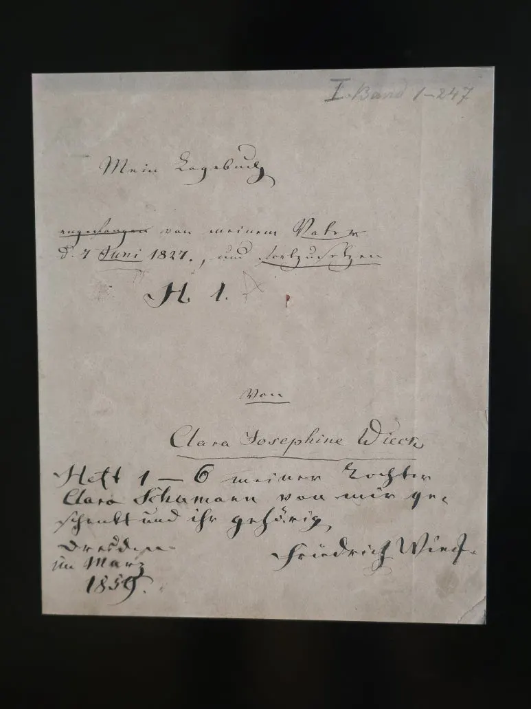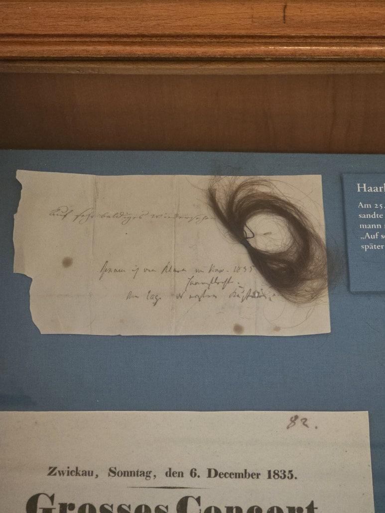 슈만에게 선물한 클라라의 머리카락과 메모, 츠비카우 슈만하우스