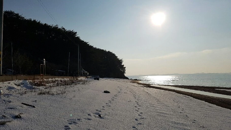 그날 근처 숙소에서 하루를 묵고 다음 날 아침 일찍 일어나 해변 산책을 하려고 나왔다. 해변길을 나와 걷다 아침장사를 하려고 나오신 어제 그 사장님과 또 마주쳤다.