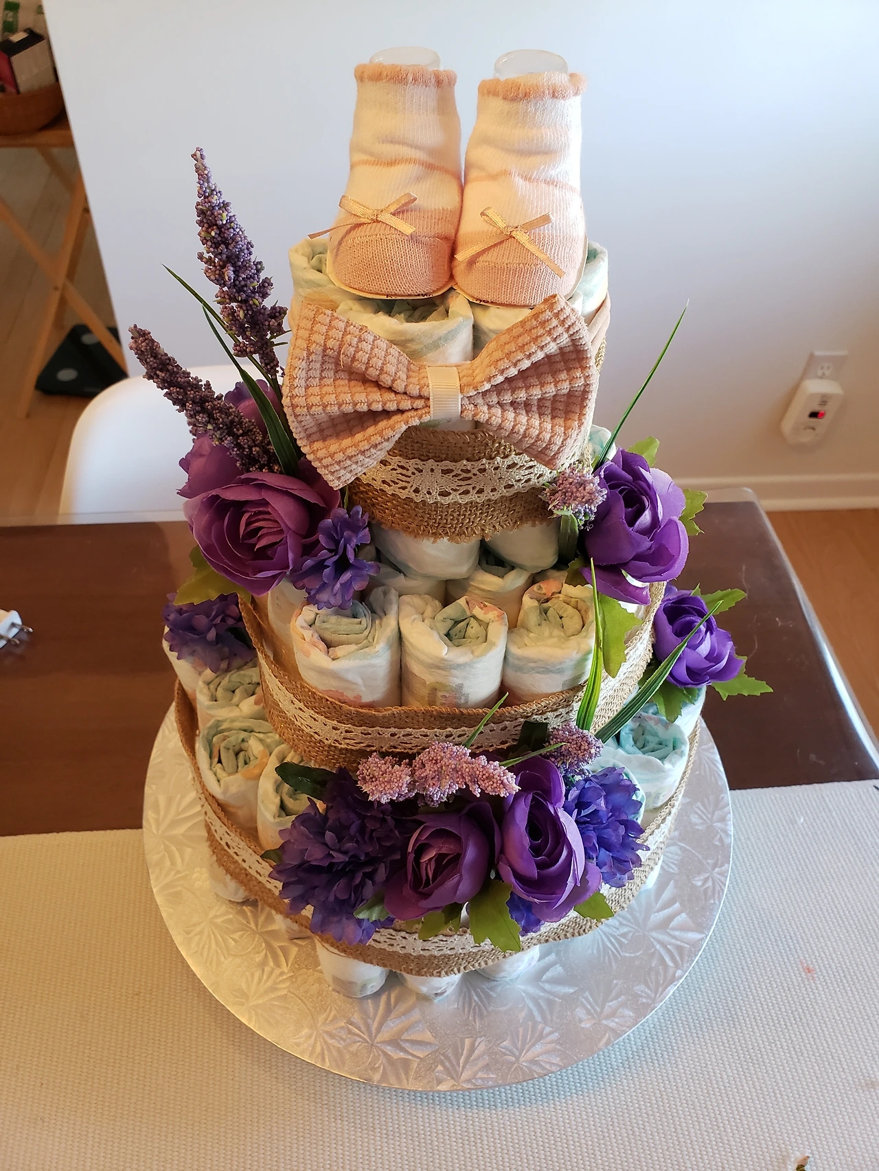 그 뒤에 그녀가 임신을 하게 되어 또 베이비 샤워를 하게 되었을 때 나는 또 기저귀 케이크를 만들었다. 그녀가 그것을 먹지 않기를 바라며..