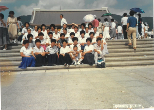 그해 여름에는 첫 여행보다 더 많은 엄마들이 참석했고 사진으로 확인되는 장소는 국립묘지(현. 현충원)이다. 전란을 겪은 세대여서 그곳에 연고자가 있건없건 수많은 희생으로 내가 살고 있다는 마음의 빚을 안고 추모와 관람을 하였을 것이다. 여행 당일에 비가 왔는지 땅도 젖어있고 바닥에 우산이 놓여있어 날씨가 아쉬웠던 여행이었을 것 같다.