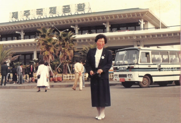 생애 첫 비행기를 탄 날 제주국제공항 앞에 선 영희 엄마의 멋진 모습이다. 그 이후 제주는 여러 번 가셨지만 우리 네 딸과 며느리와 함께 간 '엄마의 생애 마지막 여행' 또한 제주도였다. 몸이 많이 아픈 상태였는데도 끝까지 힘든 내색 없이 아름다운 추억여행을 만들어 주셨다.