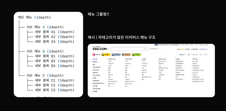 메뉴를 구성할 때는 정보의 위계 구조를 잘 설정해야 한다.