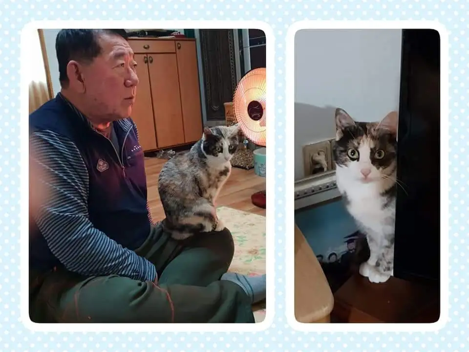 본가에 갈 때 데리고 갔는데 화연님의 아버님을 본 화비가 아버님 무릎에서 내려올 생각을 안 했다고 해요. 그래서 아버님이 강제로 간택되셔서 키우시게 되었는데 이제는 절대로 화비를 내어줄 수가 없다고 하신다네요. 화비는 아빠 무릎냥으로 애교 많은 딸로 사랑을 독차지하면서 살고 있대요. 화비란 이름은 평화롭고 행복한 생이라는 뜻라네요.
