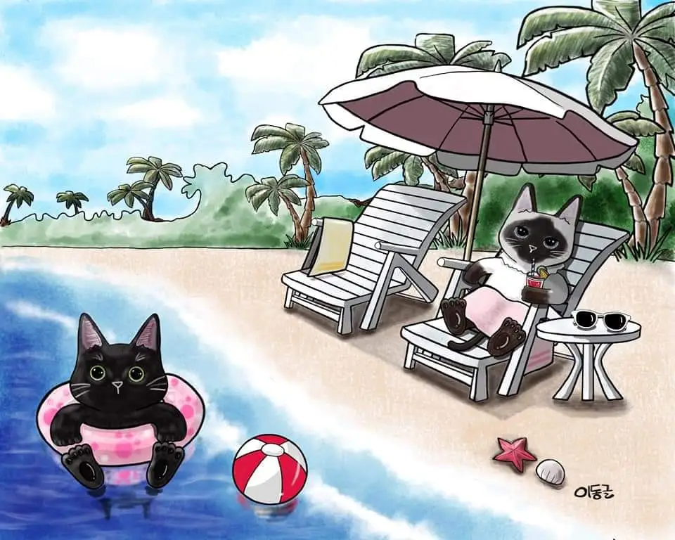 좋은 휴양지에게 노는 모습이 떠올라 그렸어요.