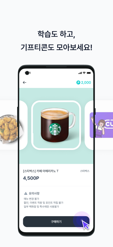 이에 더하여 리워드의 허들이 낮아져야 한다. 네이버 웹툰의 '쿠키'와 같은 보상을 추가하고, 1천 원 단위의 기프티콘으로 보상을 낮추면, 유저들은 훨씬 더 즐겁게 앱을 사용할 수 있을 것이다.