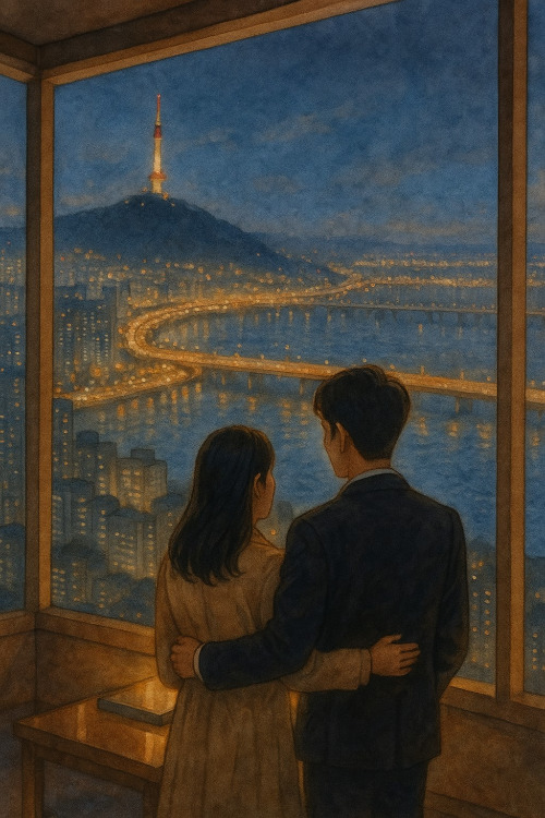 서울의 야경은 금빛 별자리처럼 발밑에서 펼쳐졌다.