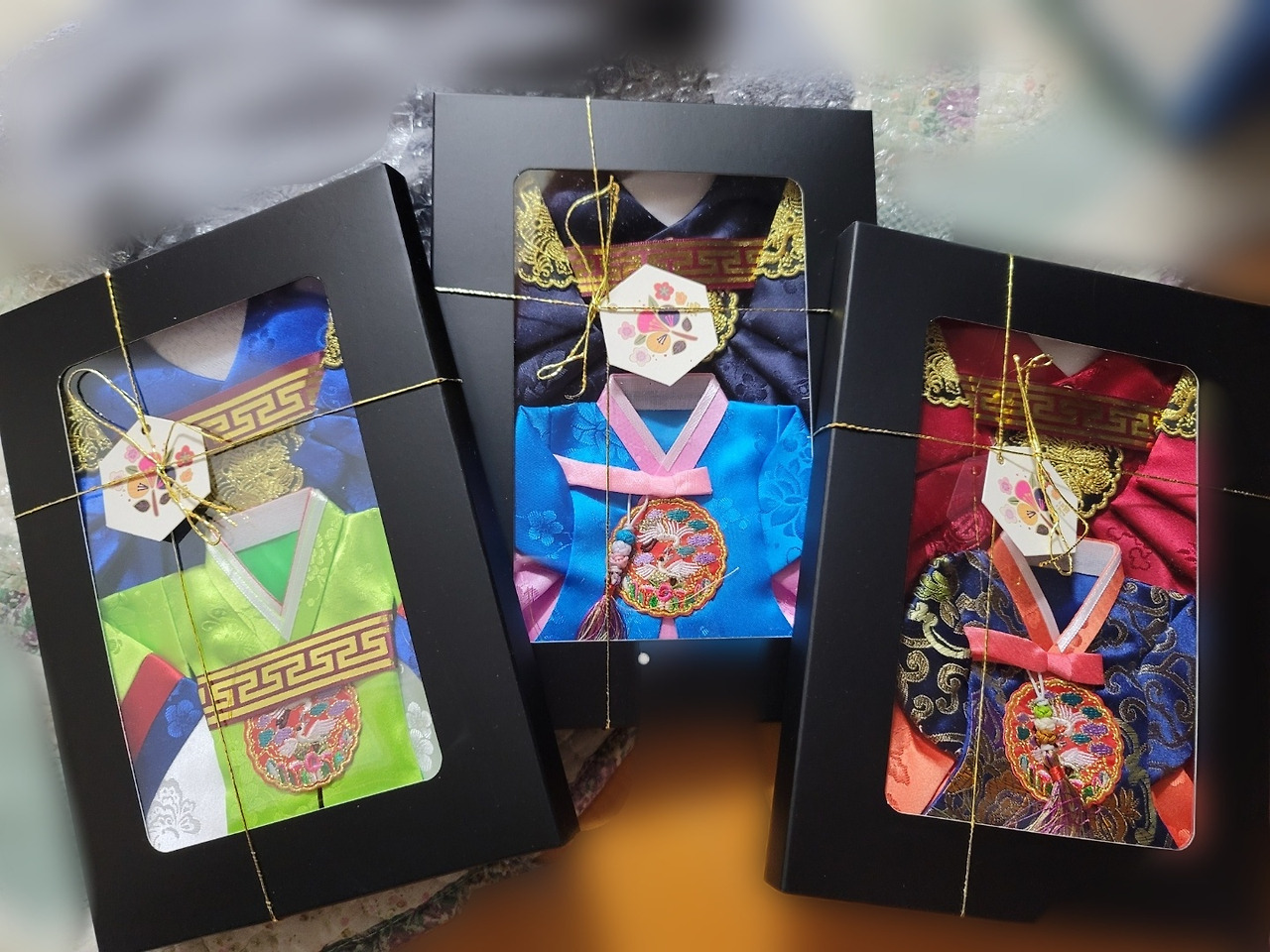 미팅에 응해준 분들과 그밖에 도움을 주신 분들을 위해 한복 모양의 와인 커버, 오설록 티세트를 준비했다.