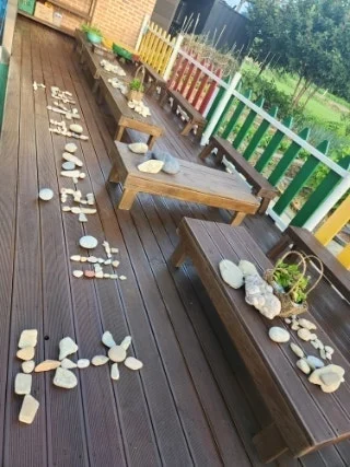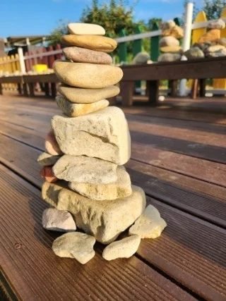 아이들이 집으로 돌아가면 돌놀이 흔적을 관찰해 본다. 어느 날 보니 나와는 다른 방법으로 돌을 쌓았다.
