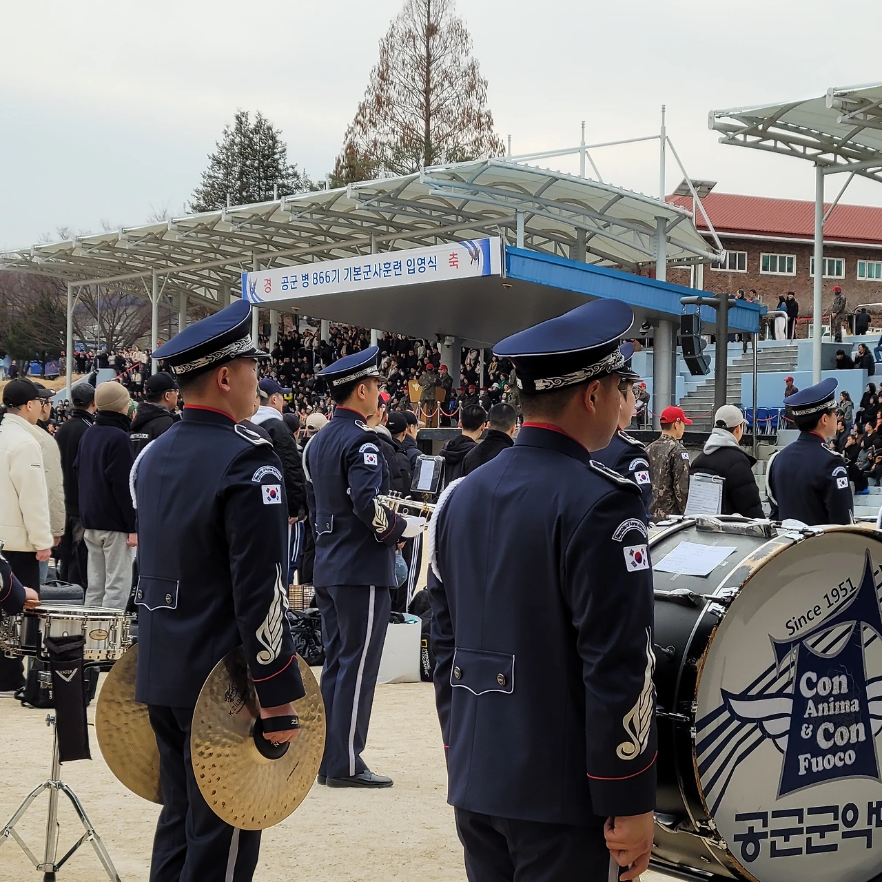 한참 동안 차량들이 꼬리를 물며 이어진 끝에 입영식장에 도착했다. 그곳에는 "공군병 866기 기본군사훈련 입영식"이라는 커다란 현수막이 걸려 있었다. 그 글자를 바라보는 순간 실감이 났다. 아들이 이제 정말 군대에 왔구나... 마음속에서 묘한 감정이 밀려왔다.