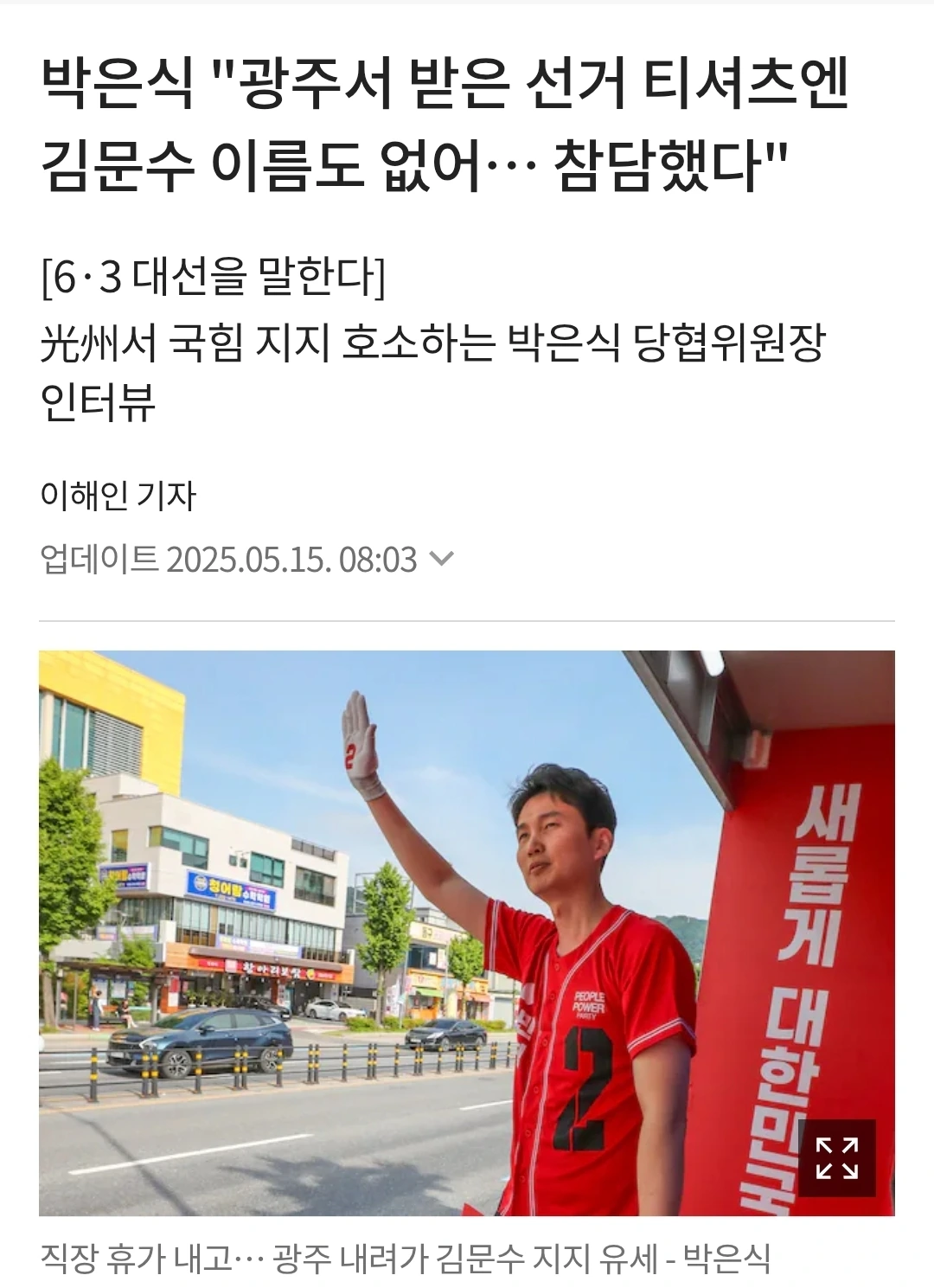 김문수 선거운동을 위해 광주로 내려와 다시 거리에 선 박은식 샘을 보며 마음이 아리다.