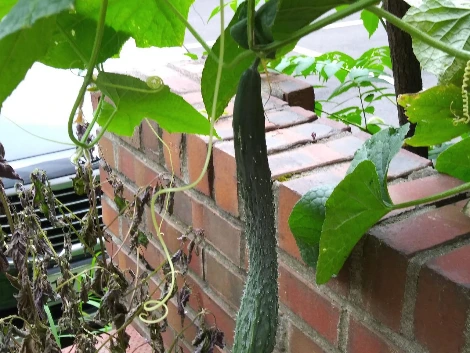 오이. 오이 털은 따가워서 조심스럽게 다뤄야 한다. 딸 때도 가위를 이용하는 것이 좋다. 가지도 마찬가지다.