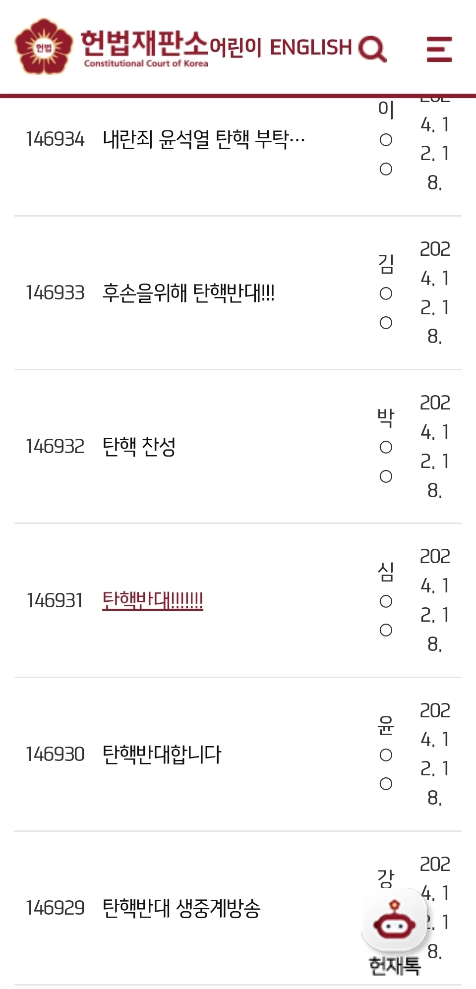 헌법재판소 게시판에 여론전 편 것은 아래와 같습니다.