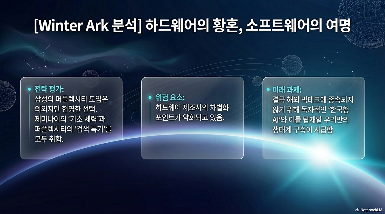 C: 스마트폰 시장의 권력 구조가 기기 제조사에서 AI 파운데이션 모델 보유 기업으로 재편되고 있으며, 구글은 경쟁 관계를 초월한 'AI 표준 플랫폼' 지위를 확보해가고 있다.