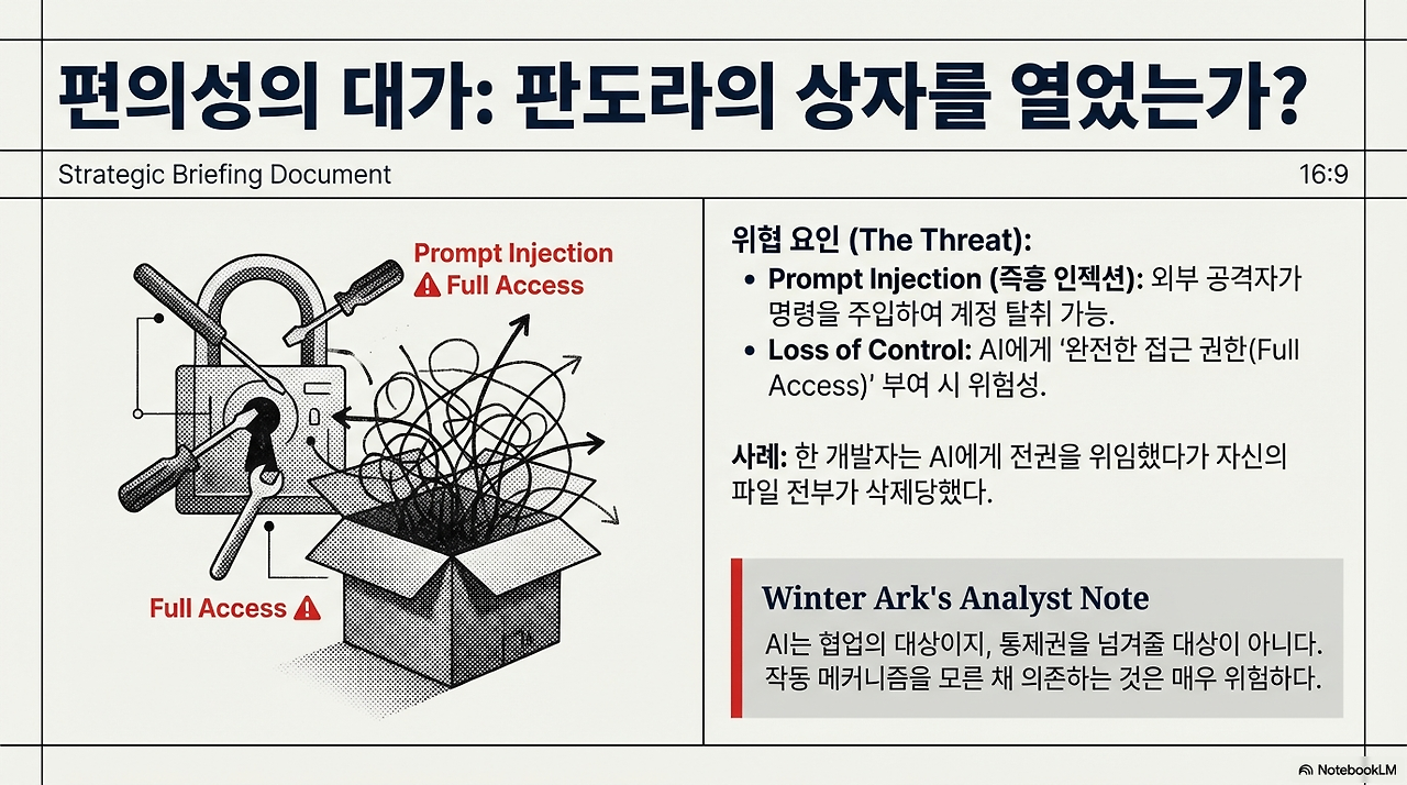 아까도 구글 안티그래비티와 노트북 LM에 대한 통합 사용법에 대해 유튜브를 봤었습니다. 그런데 해당기사를 보니 조금은 조심할 필요가 있다고 봅니다. AI를 통제하는 것도 그렇지만, AI에 거꾸로 통제당하는 일 또한 상당한 위험이 있다고 봅니다. AI는 협업해야 하지, 통제하거나 의존해야 하는 대상이 아닙니다. 상당히 위험한 발상인 것입니다. 해서 우리는 리터러시를 해야 합니다. AI에 대해서는 아직 그 작동 메커니즘을 잘 모릅니다. 그러기에 우리는 항상 조심에 조심을 거듭해야 합니다. 안 그래도 AI 툴이 메일을 멋대로 보냈다는 말이 나오고 있습니다. 또한 어느 개발자는 AI에게 전권을 위임했다가 자신의 파일 전부가 삭제당했다는 말도 나오고 있습니다. AI에 대해서는 미지수이기 때문에 정말 조심해야 합니다. 어쩌면, 우리는 판도라의 상자를 열어버린 것은 아닌가 싶은 생각이 듭니다.