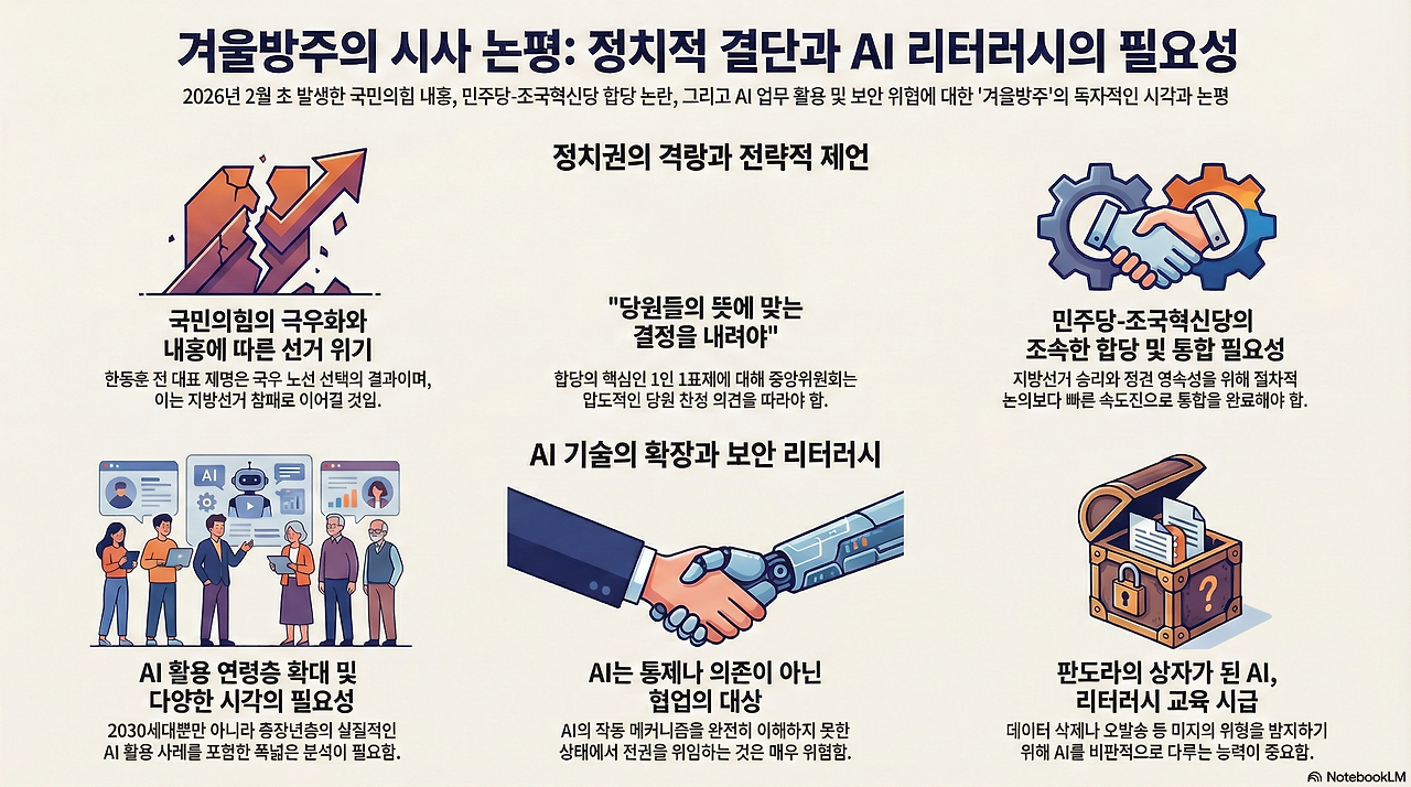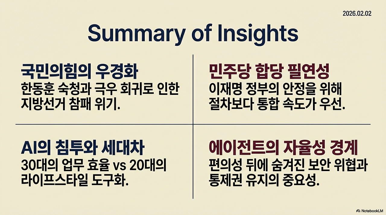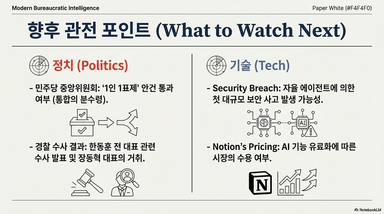 주요 키워드: 더불어민주당, 조국혁신당, 국민의힘, 정청래, 김민석, 조국, 장동혁, 한동훈, 노션, AI, AI 에이전트, 해킹
