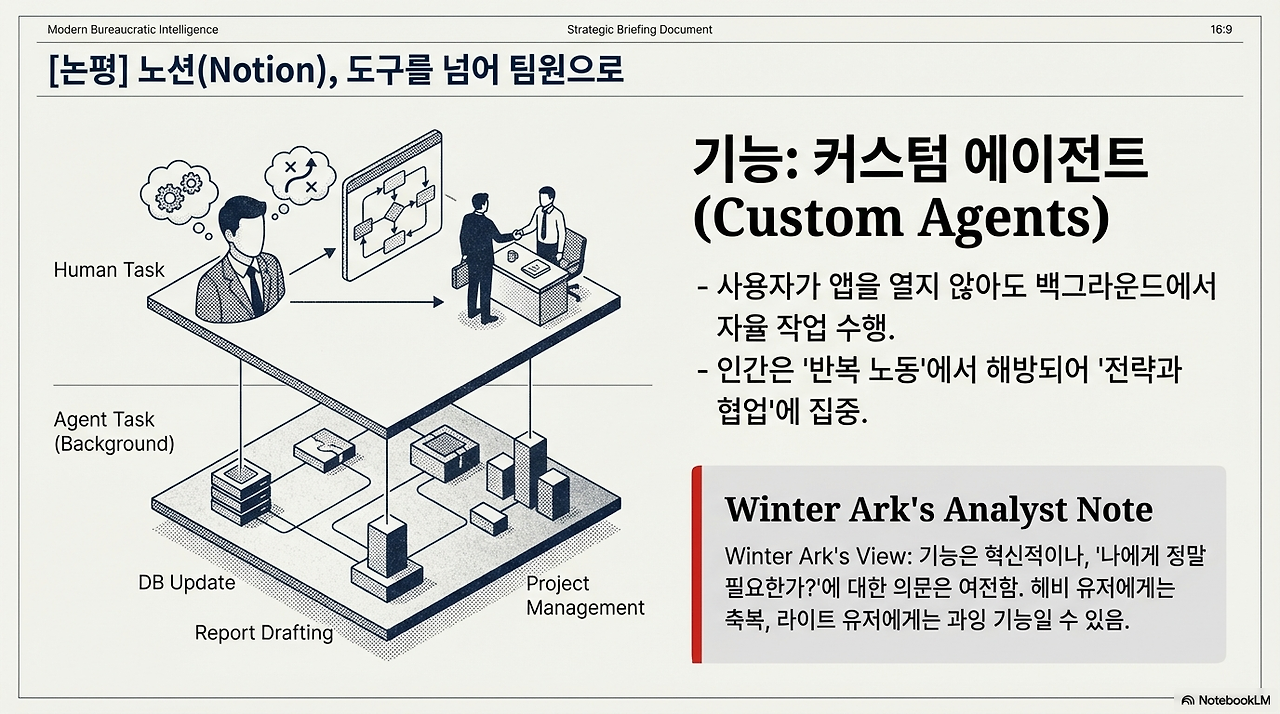 P3: 노션은 사용자의 피드백을 기반으로 업무생산성 향상에 초점을 둔 다양한 기능을 선보이고 있다. 커스텀 에이전트는 하나의 팀원으로 역할하는 팀 협업에 최적화된 AI다.