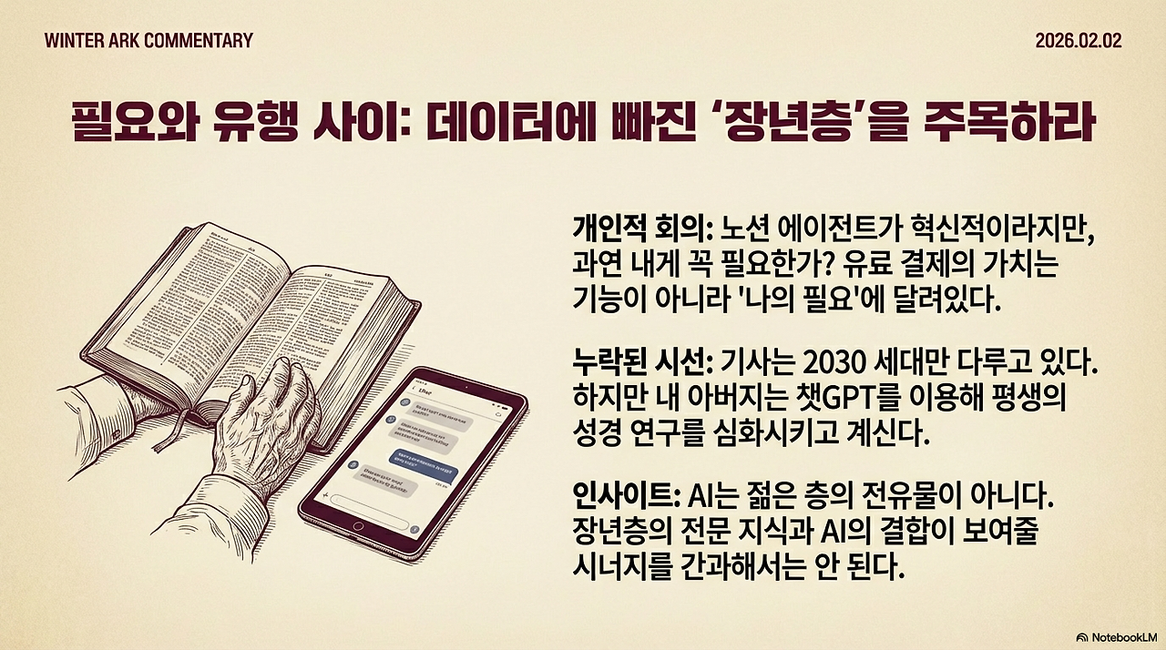 다만 데이터나 개인정보 보호에 대한 문제, 환각, 비 일관성 등의 문제가 생기면서 AI를 사용하는데 제약이 따르는 모양입니다. 노션이 이를 해결할 수 있을 것이라고 이 기사는 주장을 합니다. 저 역시 노션을 접하고 있지만 제가 돈을 내고 노션을 사용해야 하는지 결정을 못 내렸습니다. 기능문제가 아니라 제게 노션이 필요한지 파악을 할 수 없기 때문입니다. 더 정확히 말씀드리자면, 제게 노션이 필요한지조차 의문이 든다는 말입니다. 다만 노션을 사용하시는 분들에게는 해당 기사는 좋은 정보가 될 것 같습니다. 그런데 조금 아쉬운 점이 있다면, 20대와 30대를 제외하고 나머지 연령층에 대한 조사를 기사에 넣지 않았다는 점입니다. 나머지 연령층을 넣었더라면 좀 더 다양한 시각을 가질 수 있었을 텐데 말이죠. 제 아버지도 챗-GPT를 가지고 성경연구를 같이 하고 계십니다. 그동안 당신이 연구해 온 결과물을 이번에는 챗-GPT와 함께 쓰고 있는 것이죠. 최근에는 유료결제 신청을 하였습니다.(제 돈으로 합니다) 이처럼 다양한 연령대를 기사에 넣었더라면 하는 아쉬움이 큽니다.