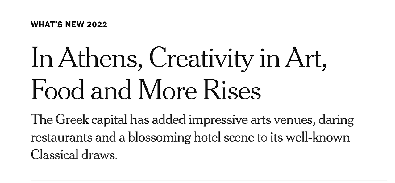 2022년 아테네에서는 예술, 음식 그리고 그 외에도 여러 산업에 대한 혁신이 성장하고 있다. 그리스 수도 아테네는 인상적인 예술거리들, 독특한 레스토랑들 그리고 고전적인 그림들로 잘 알려진 화사한 호텔뷰를 더해왔다.