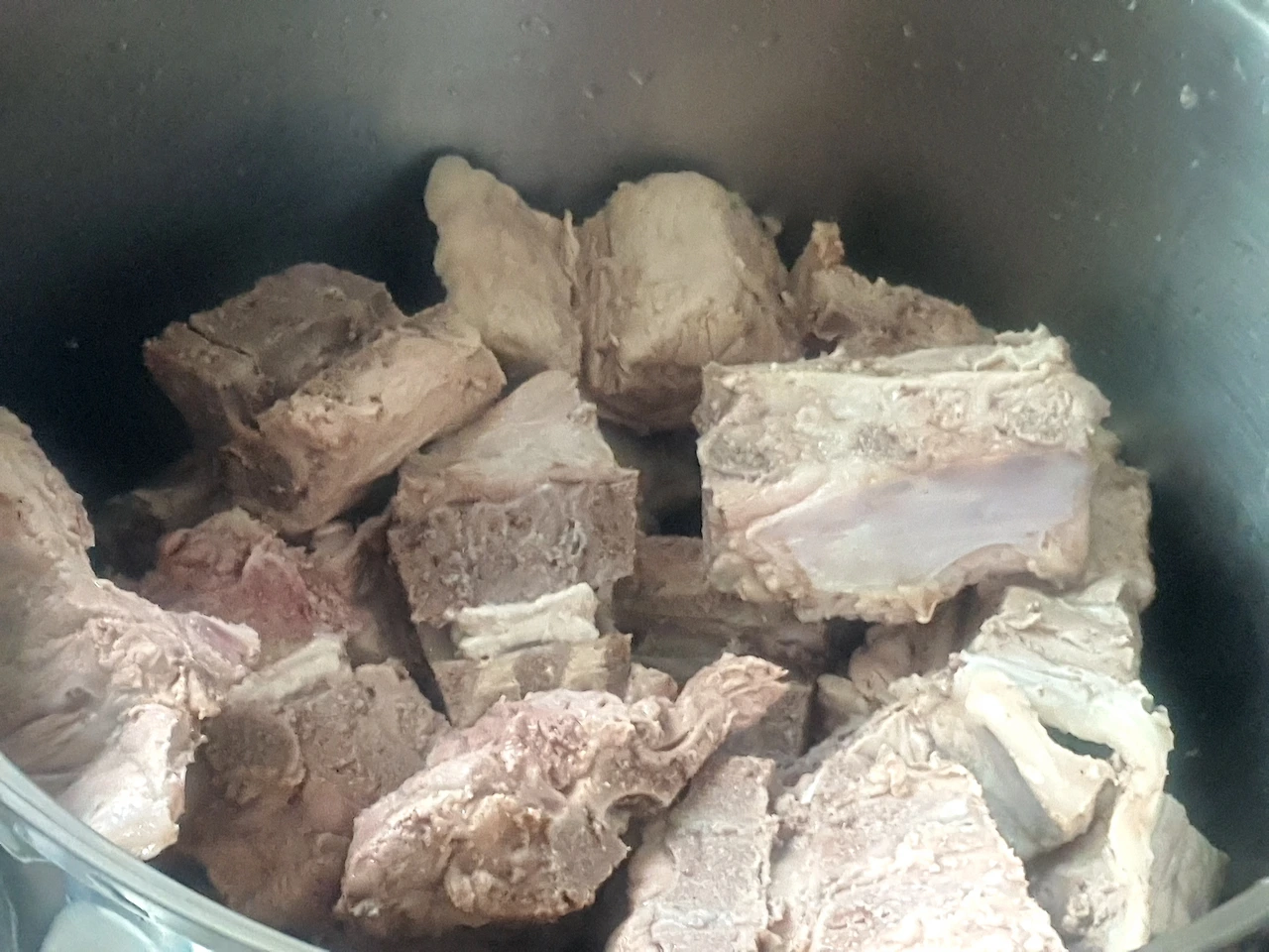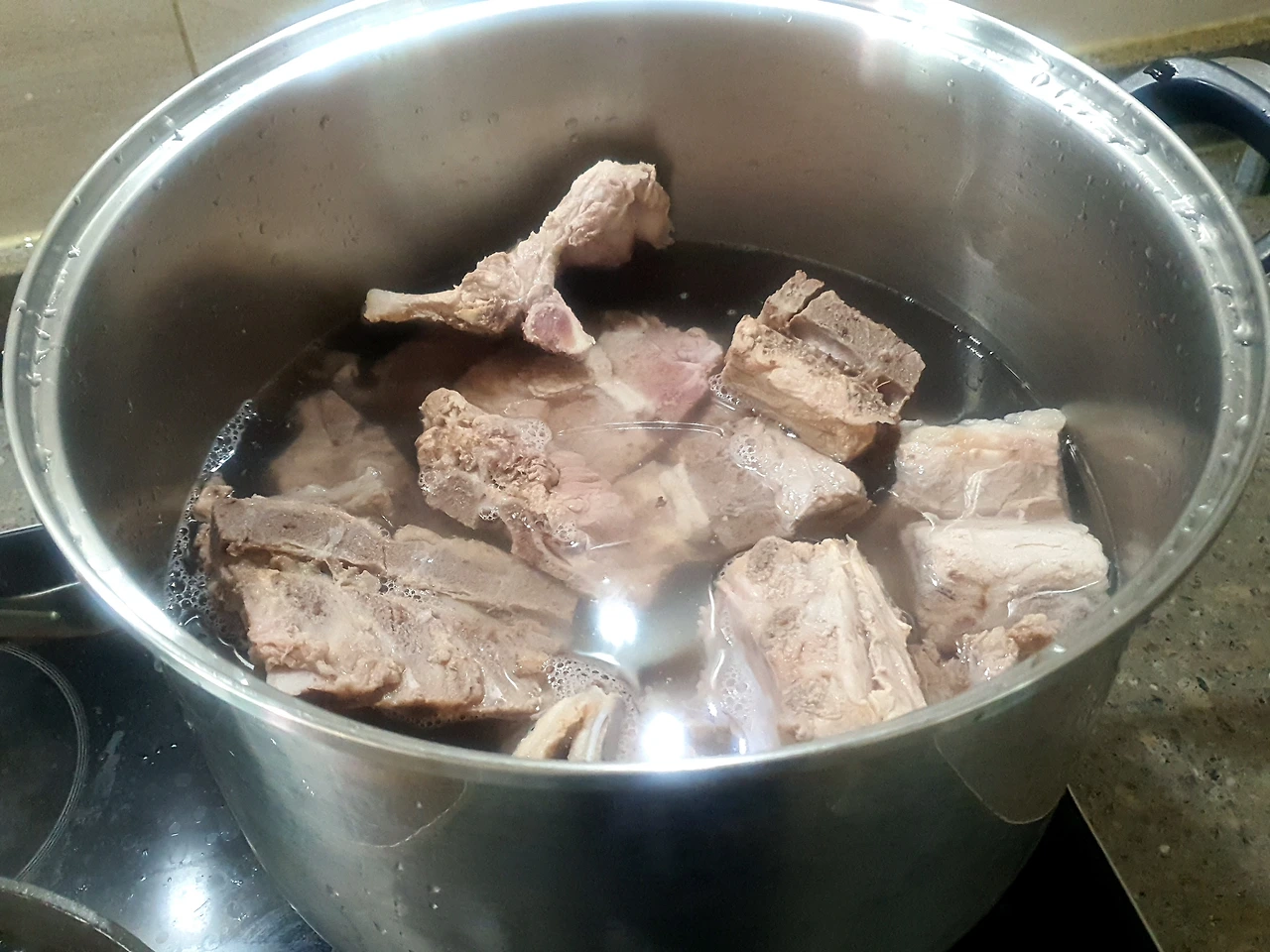 돼지등뼈가 손질도 잘 돼있고, 보기에도 참 싱싱해뵌다. 그래서 따로 찬물에 담궈 핏물을 빼는 수고로움은 생략한다. 곰솥 가득 등뼈를 넣고 등뼈가 자작하게 잠기도록 물을 담은 다음, 통후추를 한줌 넣고 불위에 올린다. 팔팔 끓어오르면 등뼈를 이리저리 굴려가며 튀기듯이 데쳐낸다. 그리고 찬물에 깨끗이 씻어 곰솥 가득 데쳐낸 등뼈를 담고 그 뼈다귀들이 넉넉히 잠기도록 생수를 채워 불위에서 푹 끓인다. 뽀얀 사골국물이 우러나고 뼈에 뿥는 살점이 잘 떨어질 정도면 충분하다.
