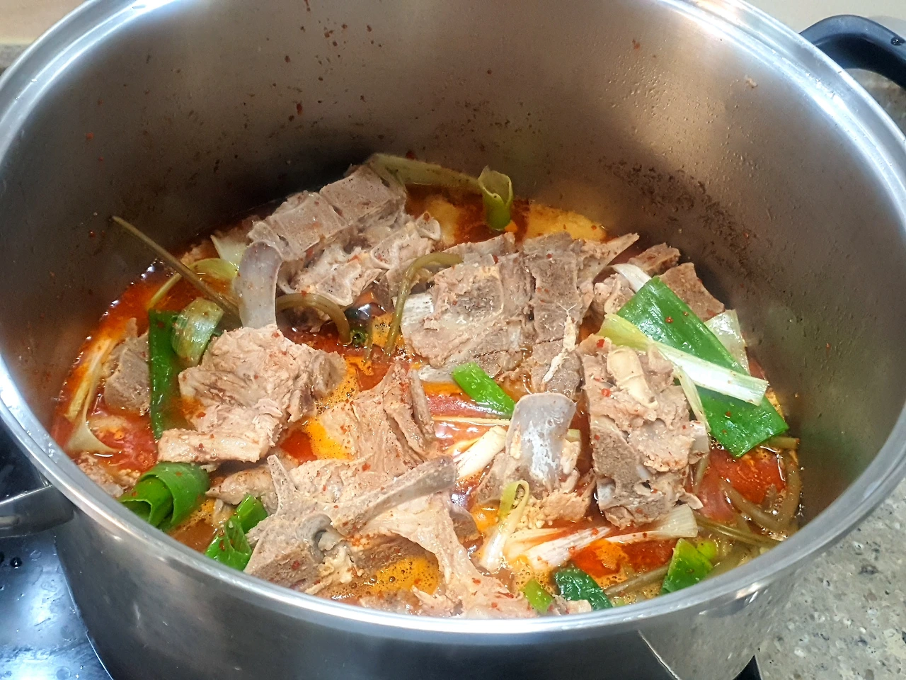 보통은 처음 뼈다귀를 삶을 때 된장을 풀어 잡내를 잡아주곤 하는데, 싱싱한 재료는 된장없이도 새우젓만으로도 그 잡내를 쉽게 잡을 수 있다. 그렇게하면 국물도 훨씬 깔끔하다.