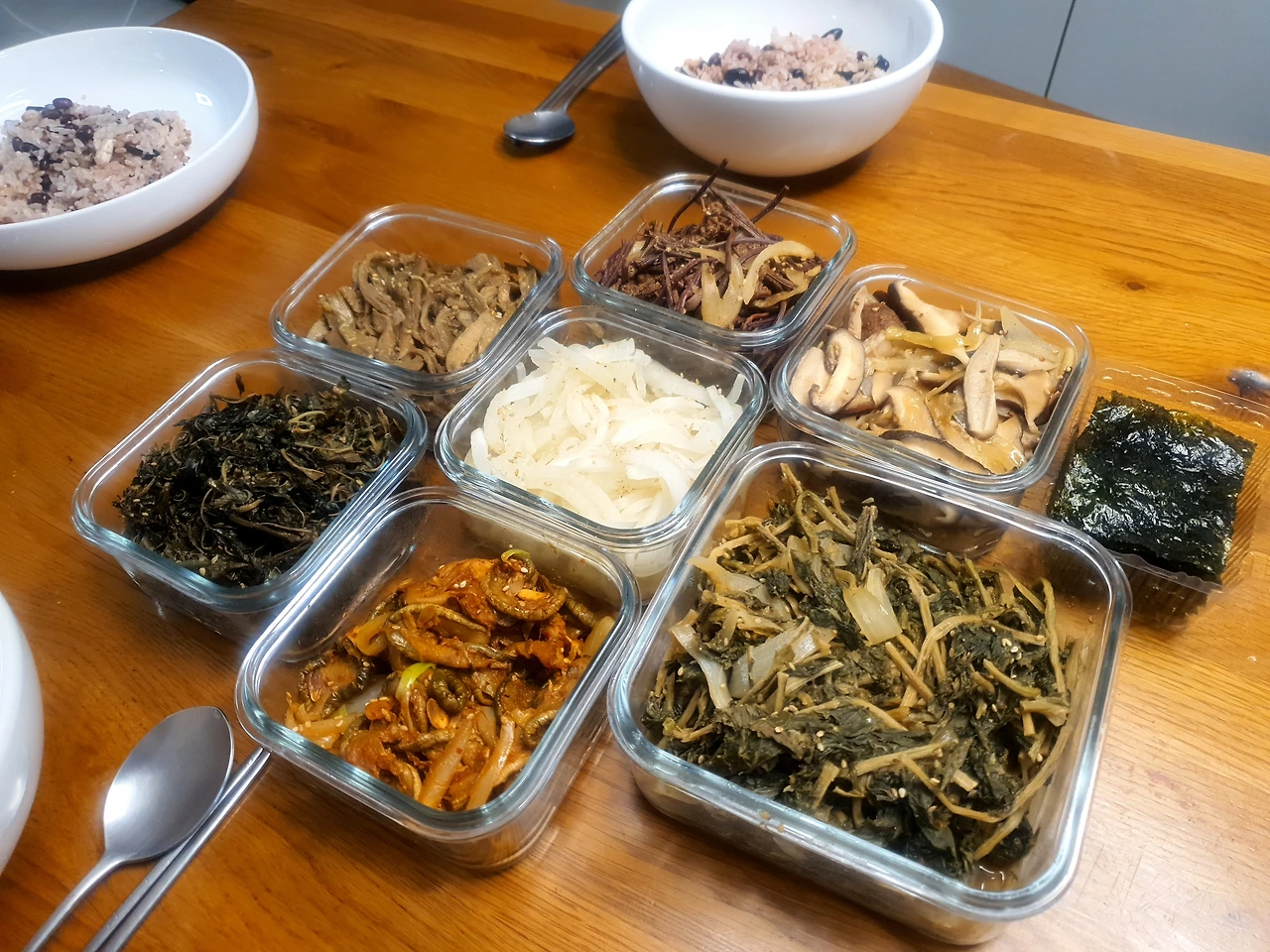 그렇게 시간을 들여 하루 전부터 묵은 나물을 손질해서 준비하고, 오곡밥에 넣을 잡곡들도 하루 전에 미리 불려두었다. 원래 정월대보름식은 보통 보름 전날 저녁에 챙겨 먹는데, 식구들 모두 일정이 바빠서 정월대보름날 당일 저녁에 모두 모여 오곡밥에 각종 나물을 곁들여 한 끼 가볍게 먹었다.