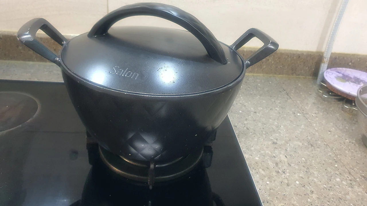 엄마가 일러둔 대로 집에 와서 냄비를 열고, 본인을 위해 준비된 특별식을 거하게 꺼내든 모양이다.