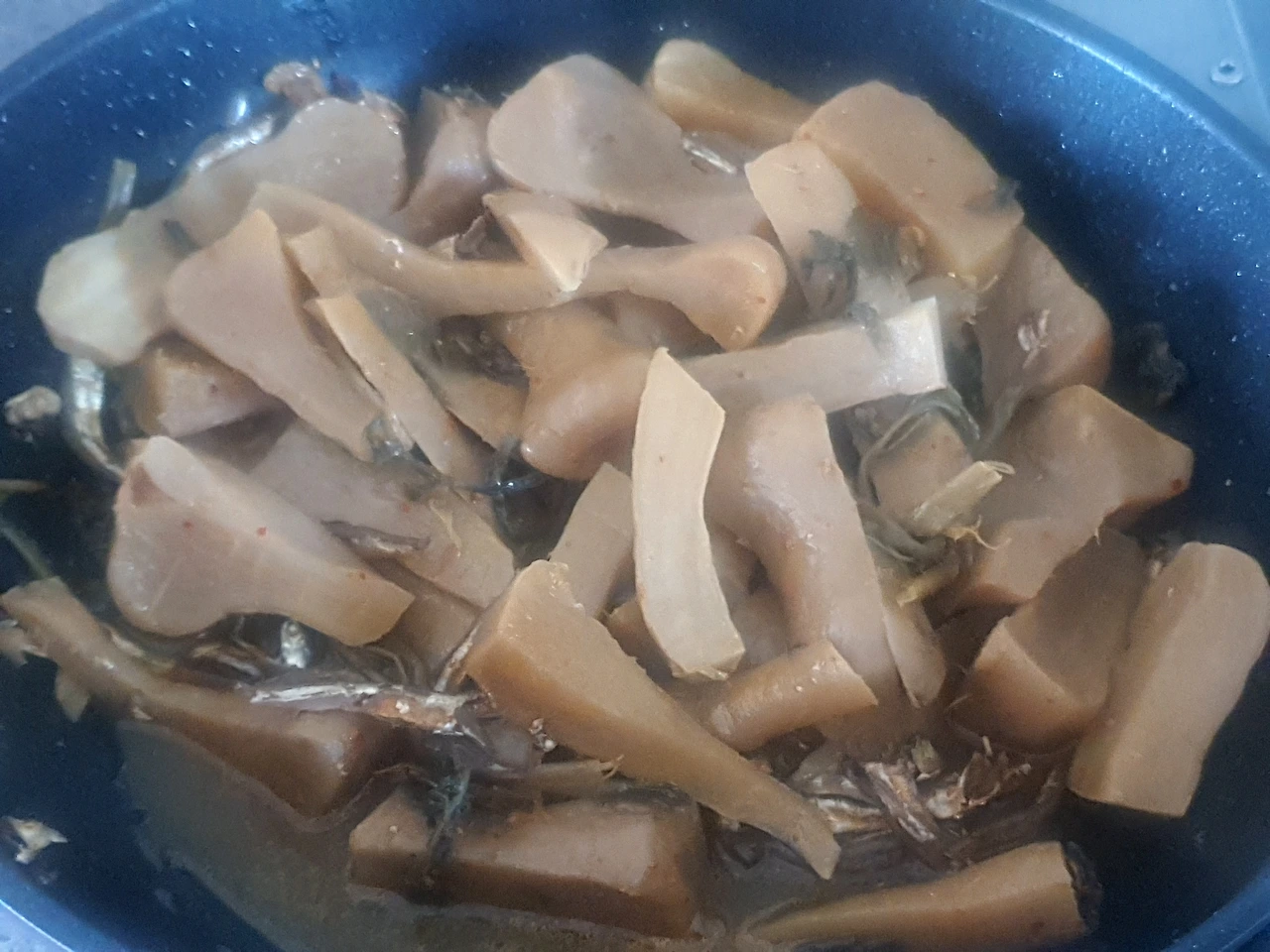 김장김치가 바닥을 드러내고 있다. 그래서 오늘은 너무 익어서 손이 안 가는 알타리김치를 꺼내보았다. 김치가 넉넉할 때 같으면 버리고 말았을 것을..... 엄마처럼 깨끗이 씻어 멸치 한주먹 넣고 들기름 두르고, 올리고당 넣어 물기 자작하게 해서 지지듯 볶는다. 비주얼은 허멀건 한데, 먹어보니 감칠맛이 도는 게 밥도둑이 될 법하다.