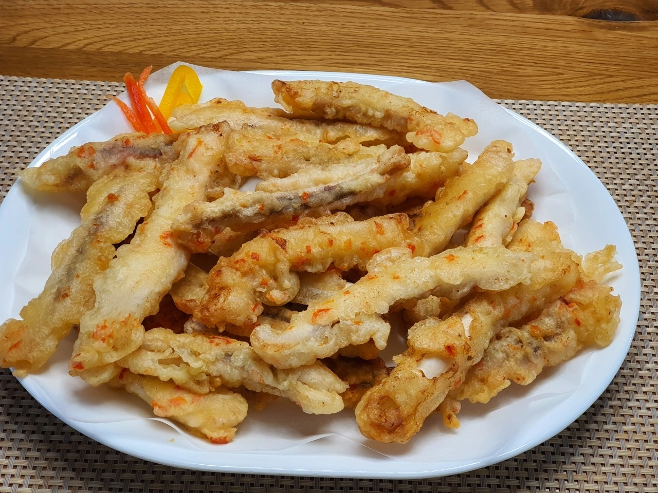 그래서 아이들을 위해선 오징어를 튀긴다. 튀김 하면 또 할 말이 많다. 아이들이 어렸을 때 너무 호리호리 해서 살 좀 찌워볼까 하고, 기름에 튀긴 음식 엄청 만들어 먹였다. 감자부터 시작해서 돈가스, 새우, 감자고로케, 고구마고로케, 오징어, 단호박, 고구마, 버섯, 인삼, 깻잎, 닭봉, 닭다리, 생선 등등 튀길만한 건 다 튀겨본 것 같다. 기름에 튀기면 신발도 맛나다 하지 않던가!