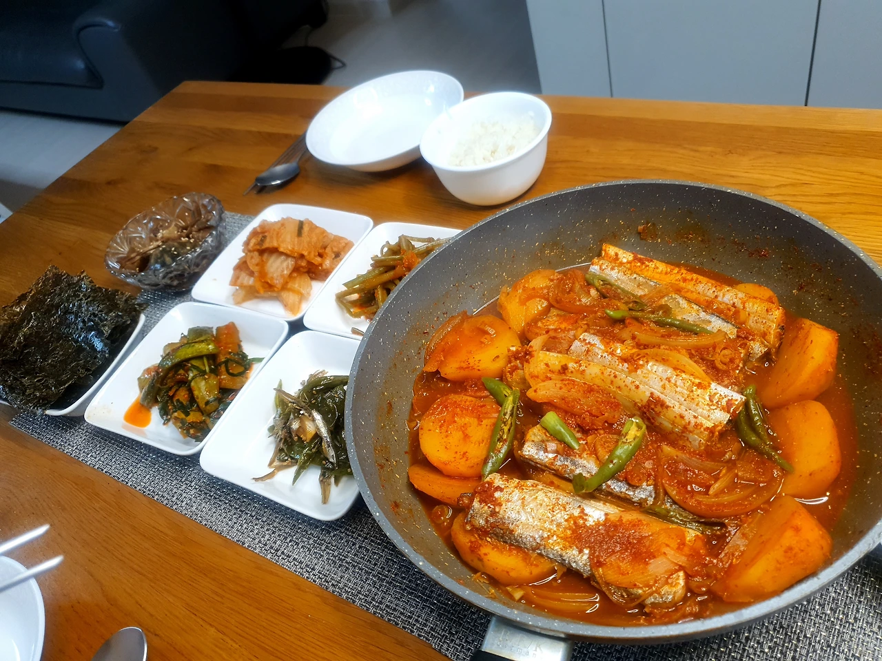오늘 저녁은 우리 엄마표 반찬과 하지감자를 수확하는 여름이면 엄마가 자주 해 주셨던 갈치감자조림이다.