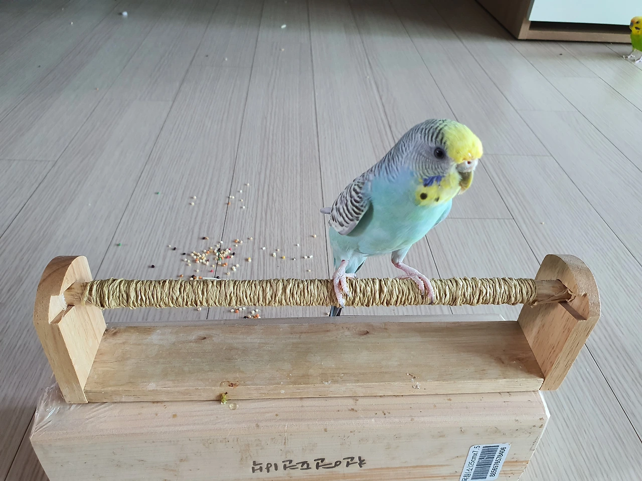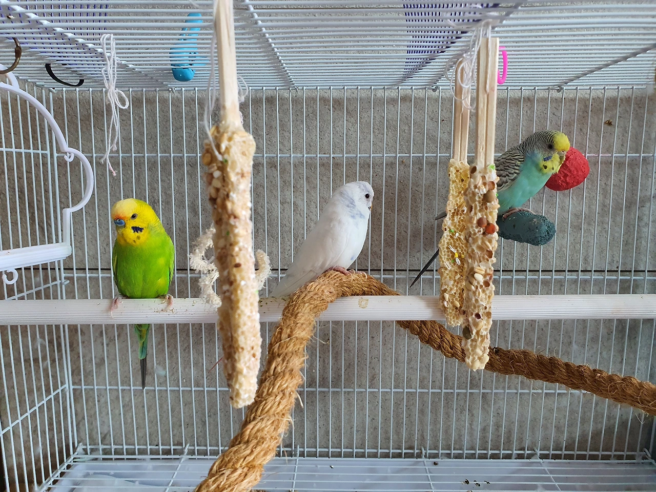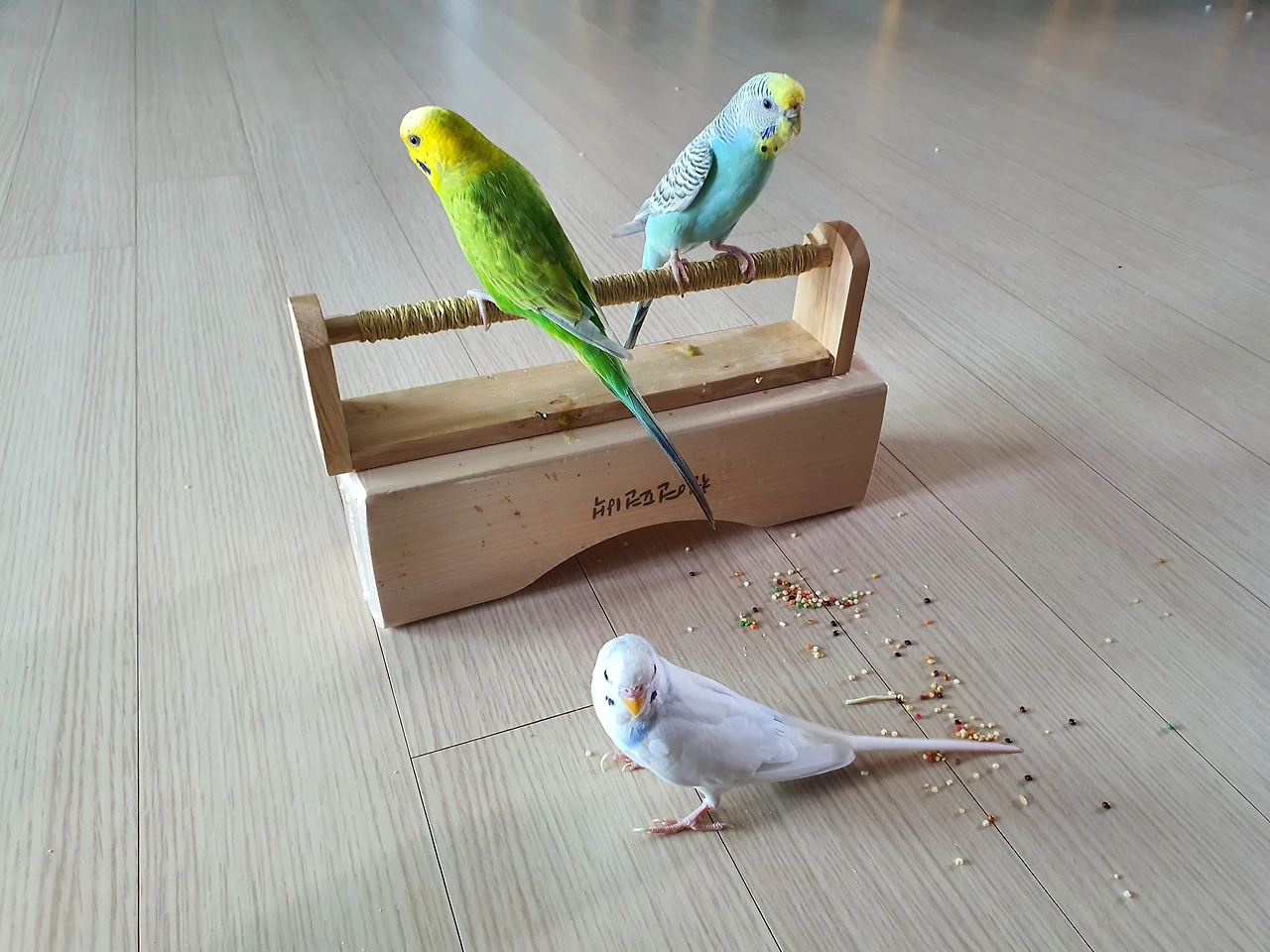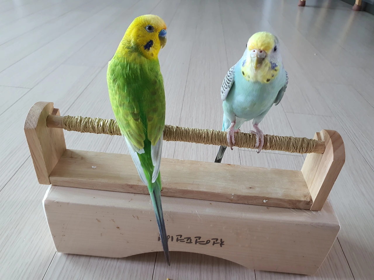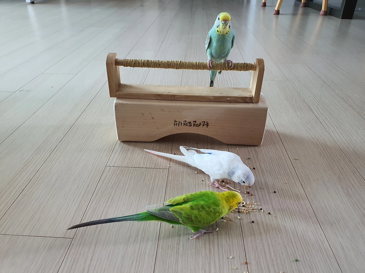 하루는 이렇게 놀아보고, 또 하루는 저렇게도 놀아보고 말이다. 이런 저런 조합속에 아마도 우리 앵무새들도 작은 공간에 갇힌 삶이지만 셋이기에 좀 더 덜 단조롭지 않을까? 둘이라는 조합이 주는 딱 떨어지는 맛의 답답함에 셋이여서 숨쉴 여유가 생긴 것 같다. 요녀석들을 들여다보면 목련이를 데려오기 참 잘했단 생각이 든다.