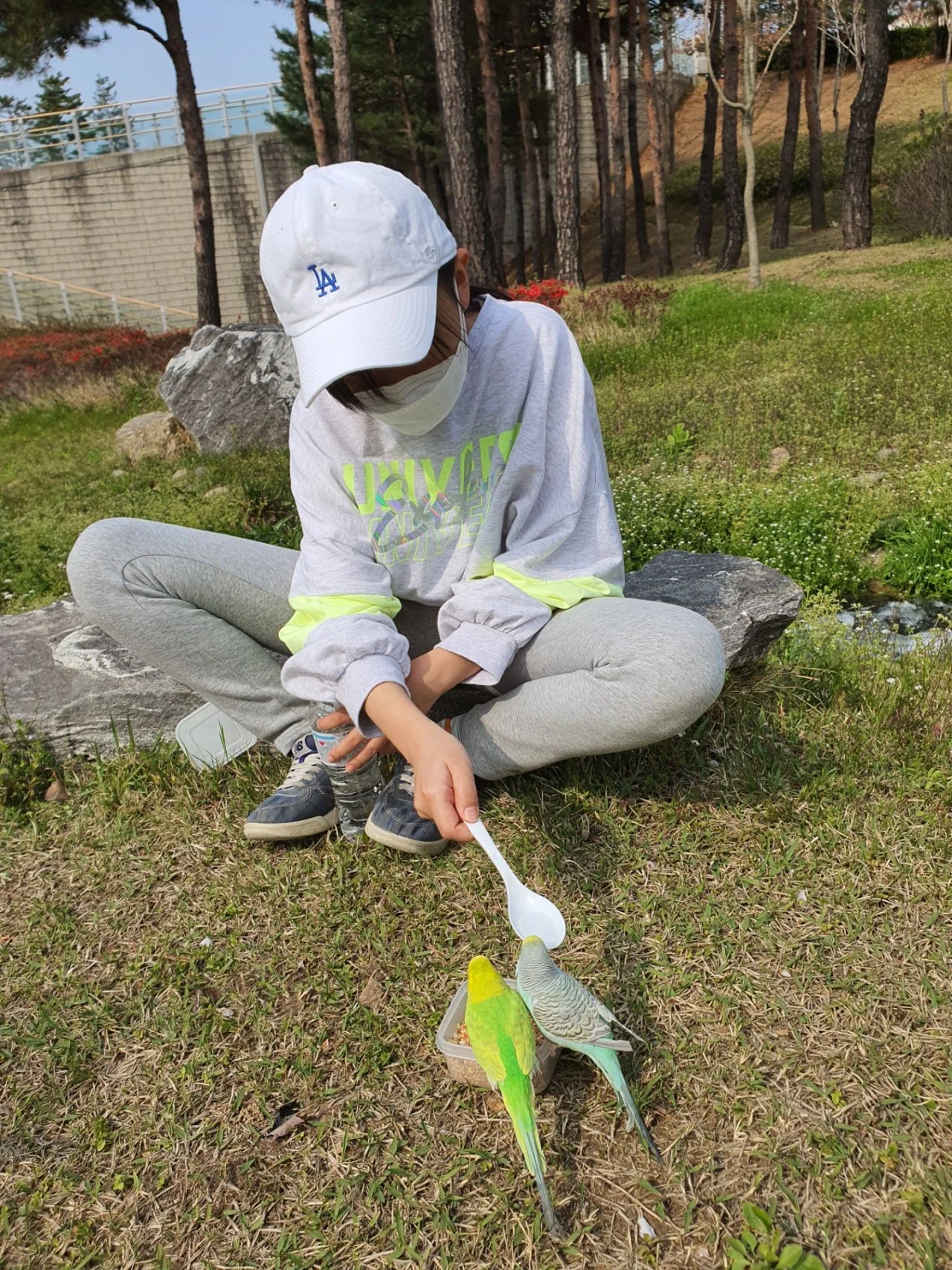 2022년 올 봄, 아빠랑 시골장터에 놀러갔던 울 꼬맹이가 흔하게 볼 수없던 흰색 잉꼬 앵무를 보고 반해서 한마리를 더 들였다. 그 이름이 목련이다. 목련꽃을 닮은 그 순백의 모습을 따서 아빠가 붙여준 이름이다. 21세기에 어울리지 않는 이름이라고 우리가 농을 했지만, 그간 아빠의 변화에 박수를 보내며 흔쾌히 받아주었다. 울집 아빠는 애완동물이라 하면 질색팔색을 하는지라 소라게 한마리도 못키우게 난리를 폈던 이력의 사나이다. 개 한마리 키우고 싶다는 막내딸에게 "나중에 커서 너 혼자살게 되면 그때 키워봐~!" 라며 쐐기를 박던 아빠다. 앵무새 잡아왔을때도 빨리 갖다버리라고 야단이었는데, 요즘 새들을 살들하게 챙기는 모습을 보면 이제 사람됐구나? 싶다.ㅎ