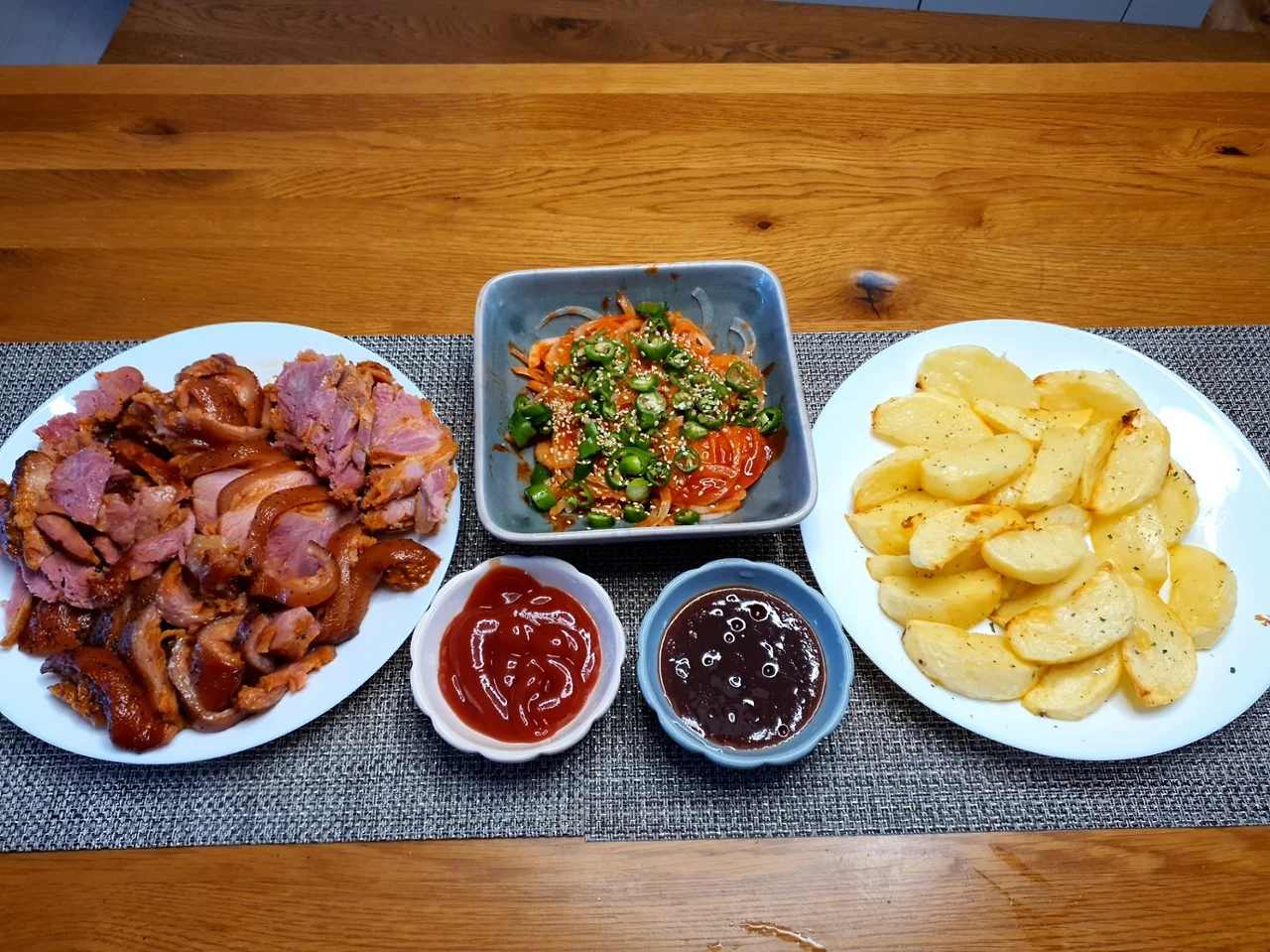 독일식 족발 슈바인학센과 웨지감자 튀김의 조화