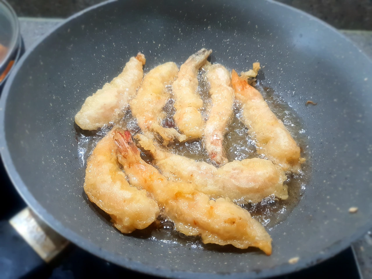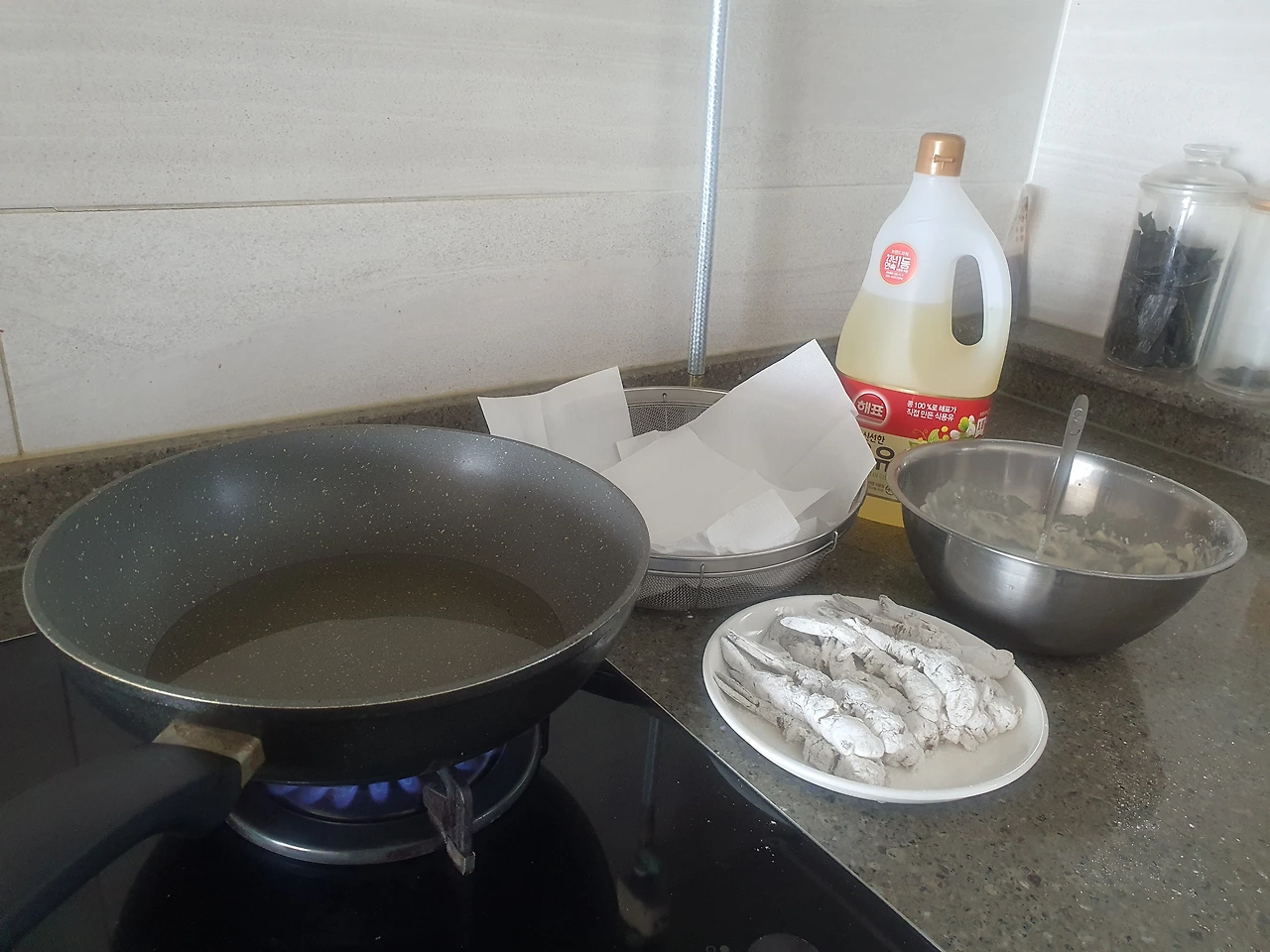 그래! 바삭바삭하게 새우튀김을 만들어보자.