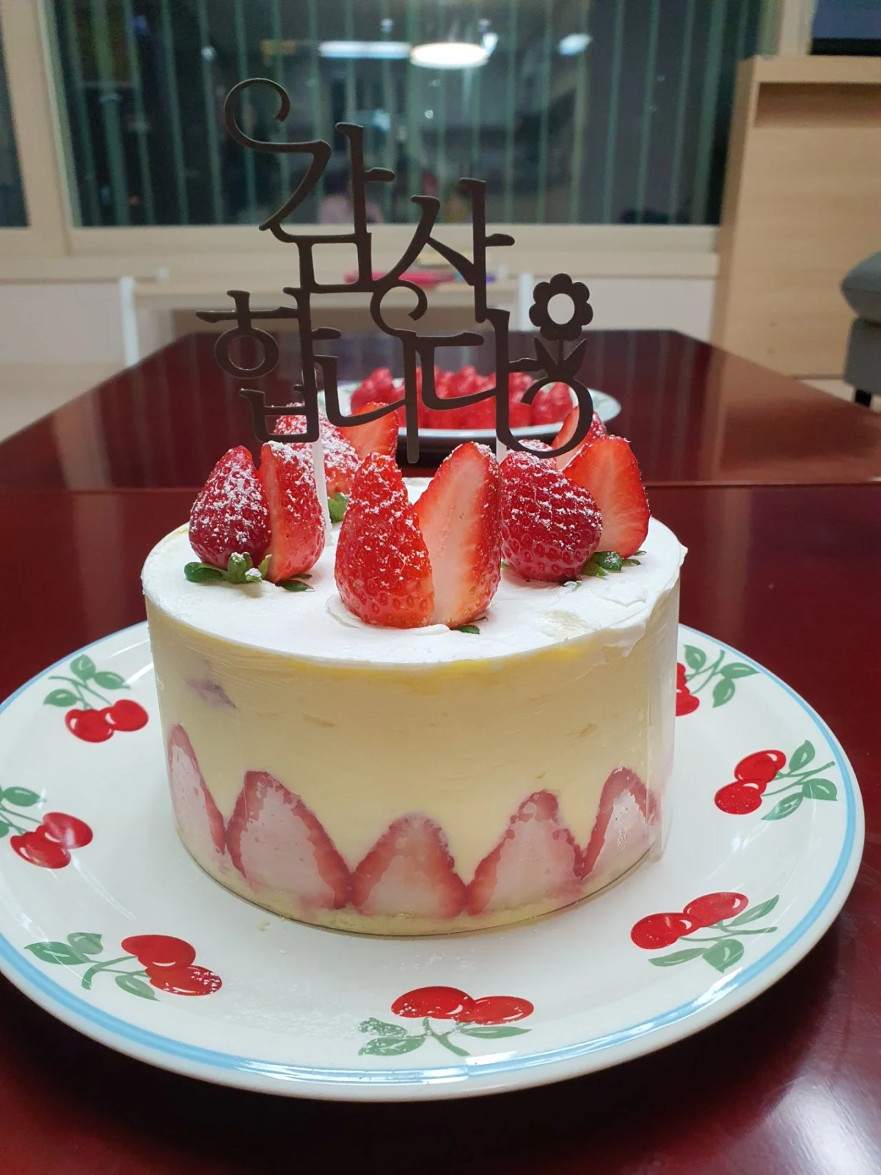"네! 그런데 생크림이 너무 단단해서 제대로 못 만들었어요! 케이크 시트가 3층짜리 여서 아쉬웠어요!"