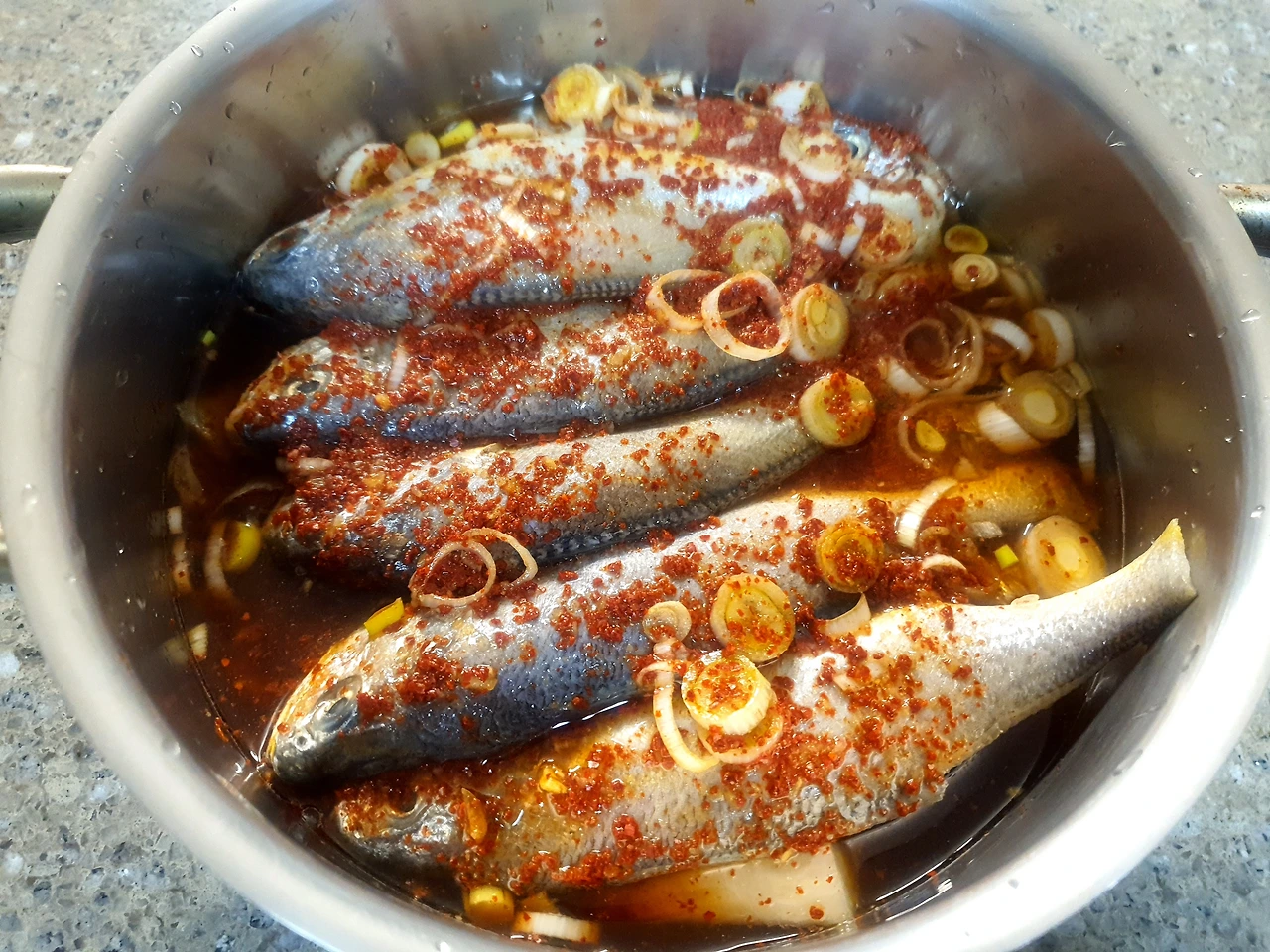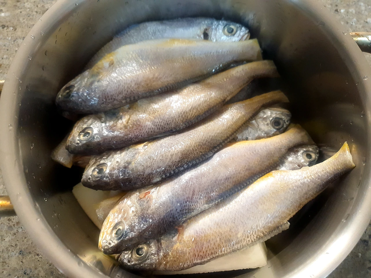 그런 연유로 요즘 우리 집 식탁에는 달달한 가을무가 들어간 음식이 빠지지 않는다. 오늘은 무 위에 잘잘한 생조기를 10마리 올려 얹고, 국물 자작한 생조기찌개 한번 해본다. 벌써 지난 일요일에 이어 두 번째다.