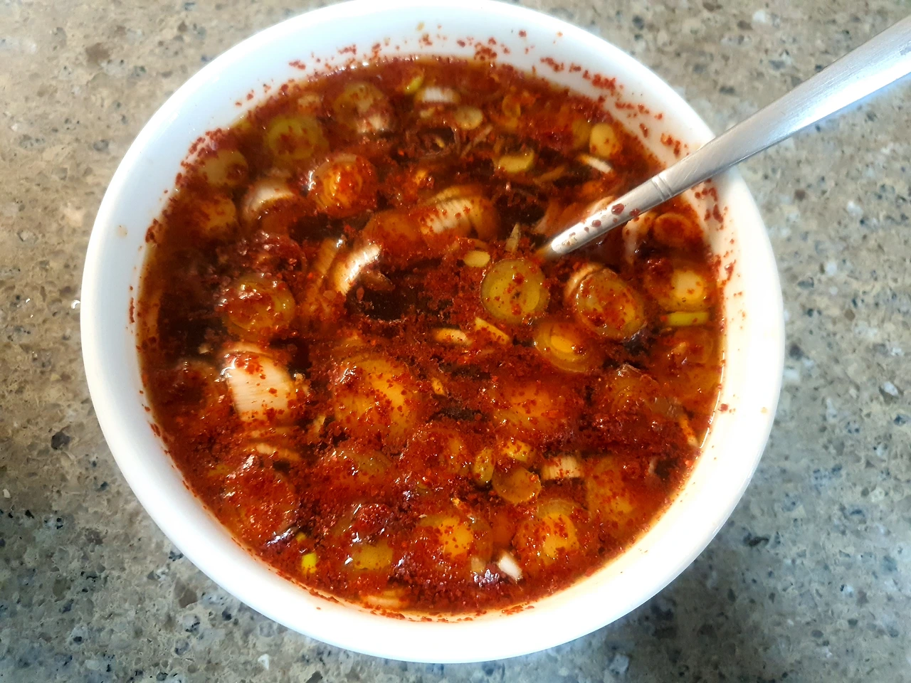 필요한 국물양을 미리 가늠해서 그 물에 양념(간장, 고춧가루, 후춧가루, 생강, 마늘, 설탕, 파등)을 섞어 간을 맞추면 쉽다. 숟가락으로 살짝 맛봐서 달짝지근하면서도 간간한 정도의 맛! 정확한 계량은 사실 유튜브 맛선생들의 레시피를 따라 하면 된다. ㅎㅎ