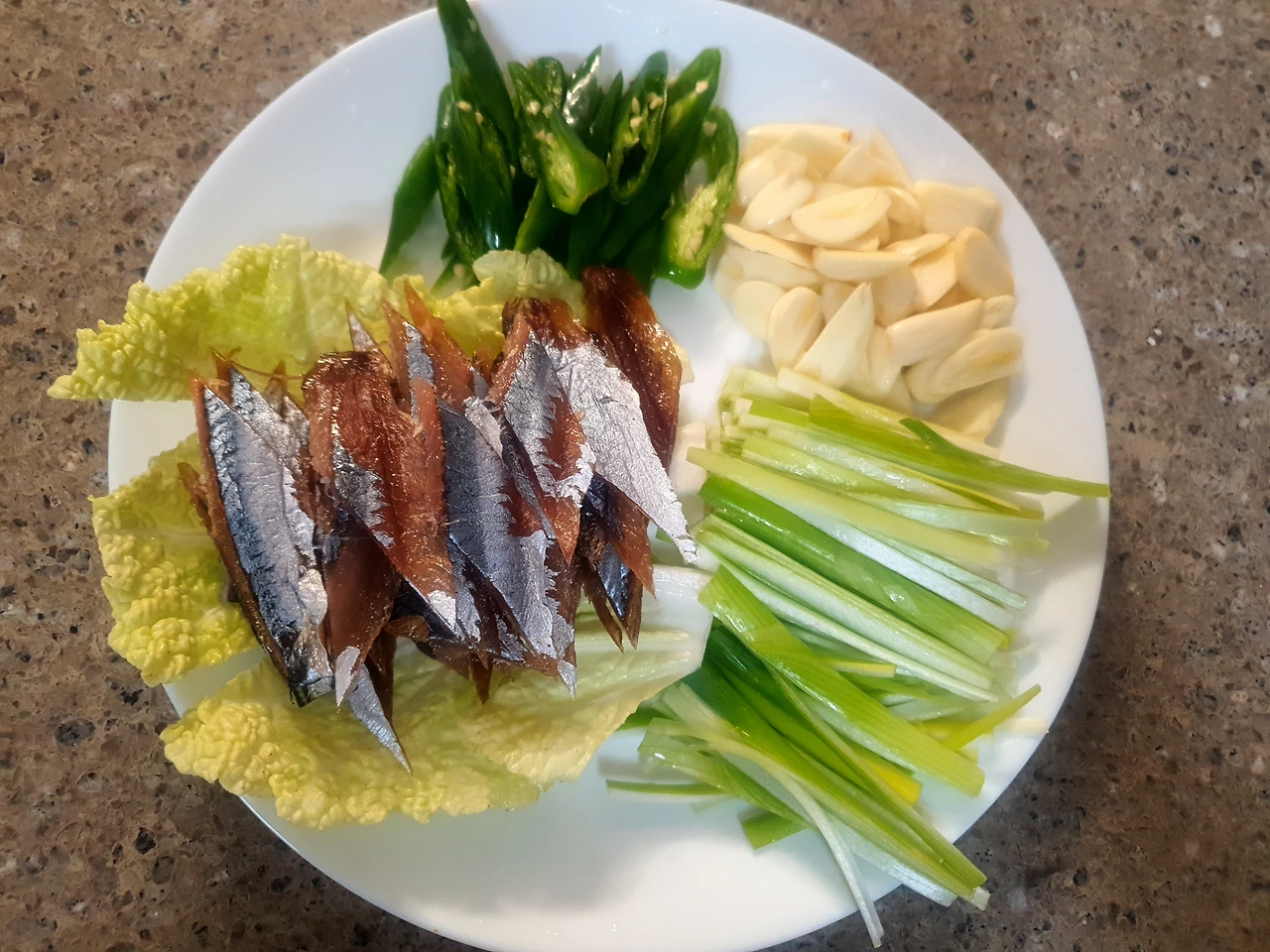 그래서 오늘은 포항에서 온 꽁치과메기 안주로 준비한다.빛깔부터 청어과메기와 다르긴 하다.